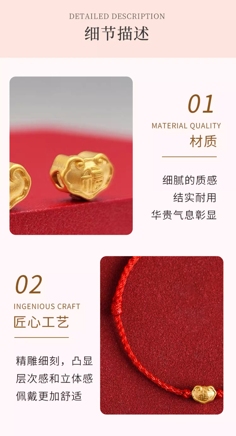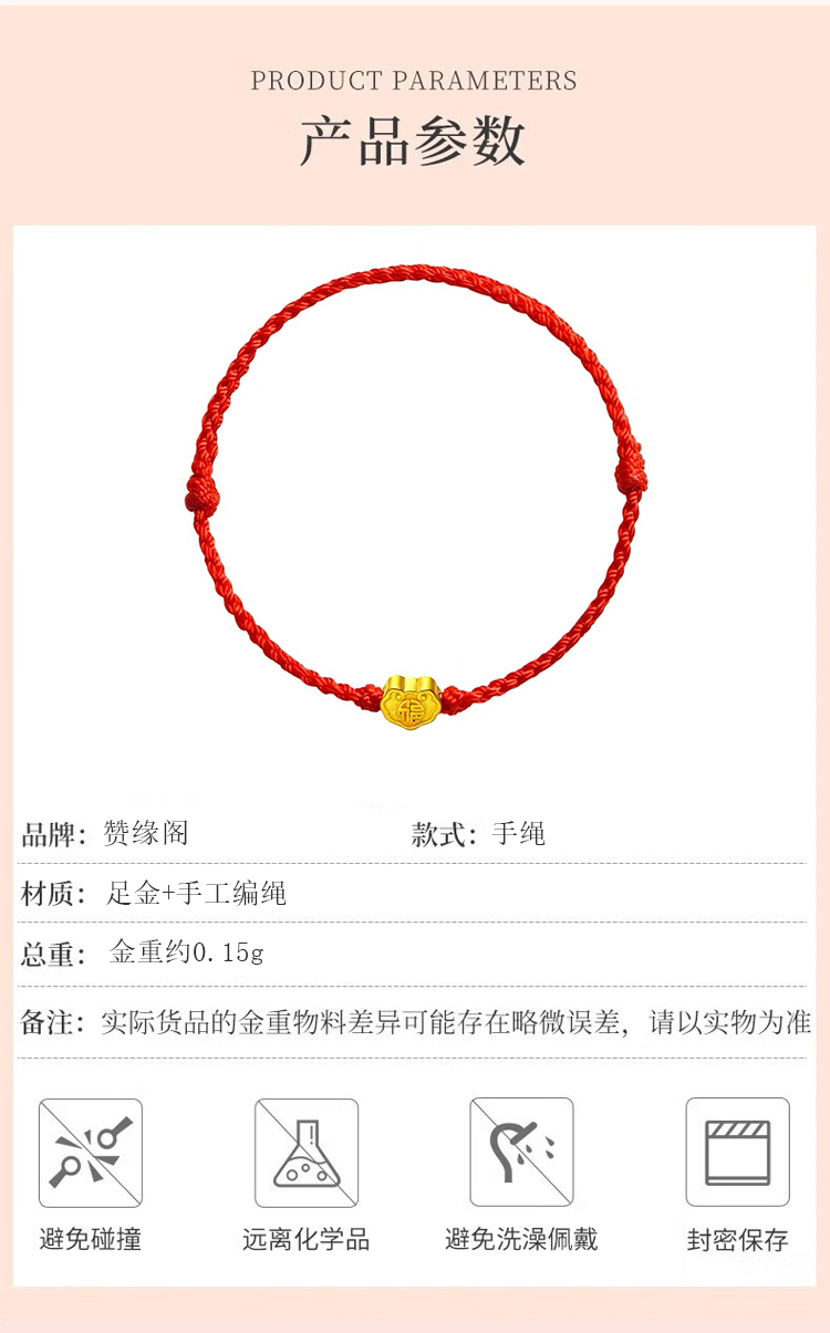 商品名称:赞缘阁 黄金足金平安锁手绳PAS01(单位:件) 红色0.15-0.2g