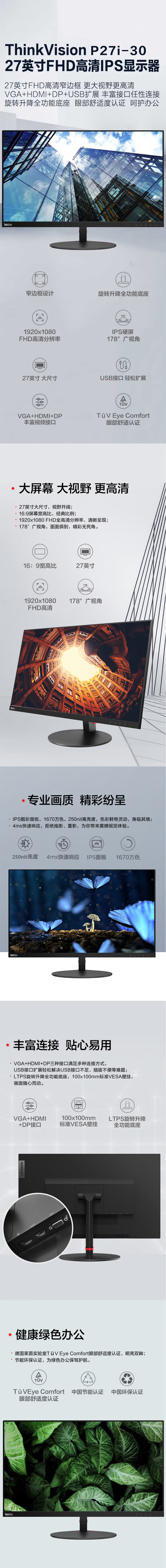 商品名称:联想 P27i-30 27英寸 电脑显示器(计价单位:台) 黑色