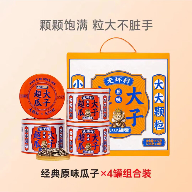 商品名称:小小罐君 内蒙产瓜子 原味超大瓜子礼盒装(两罐装)436g 两罐一提