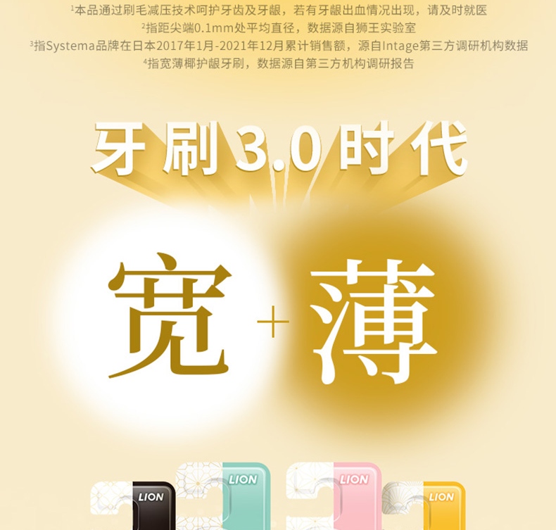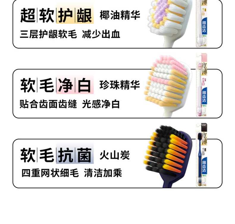 商品名称:LION 狮王细齿洁宽薄牙刷宽头7列61孔软毛细毛牙刷 颜色随机发货 宽薄珍珠白牙刷*3支