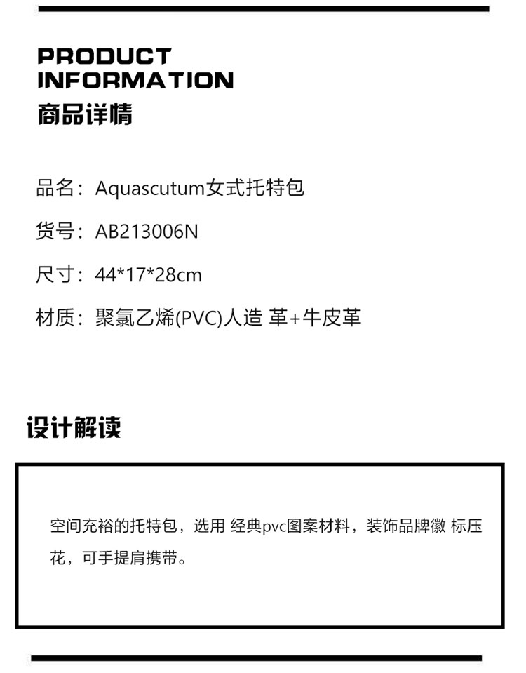商品名称:Aquascutum雅格狮丹 新款高级质感老花设计通勤托特包女AB213006N 单位:个 深蓝色