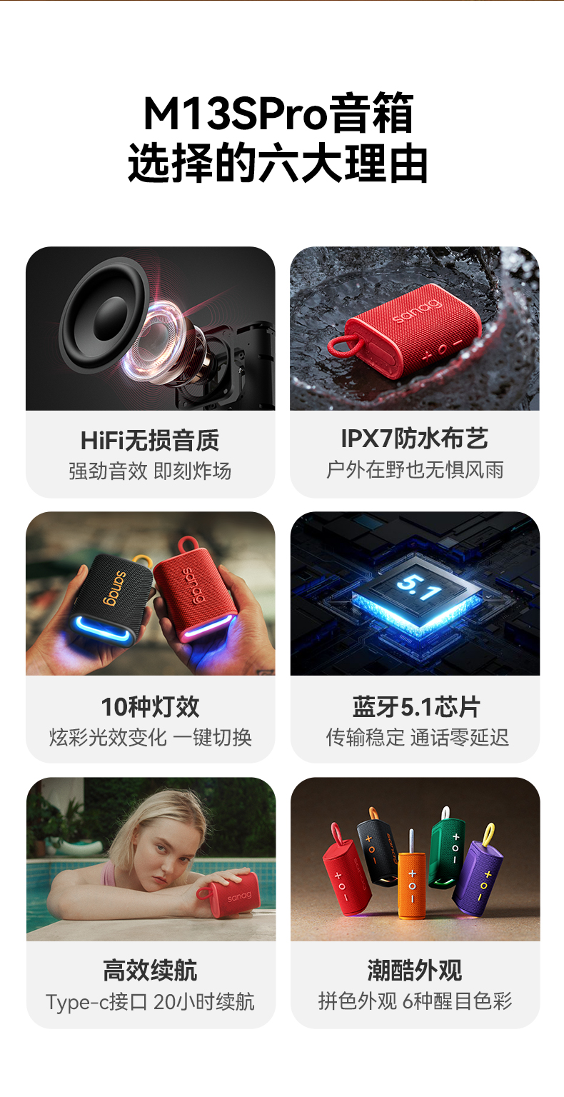 商品名称:SANAG塞那蓝牙音箱便携式 低音炮户外音响露营骑行防水设计 M13Spro(单位:个) 绿色