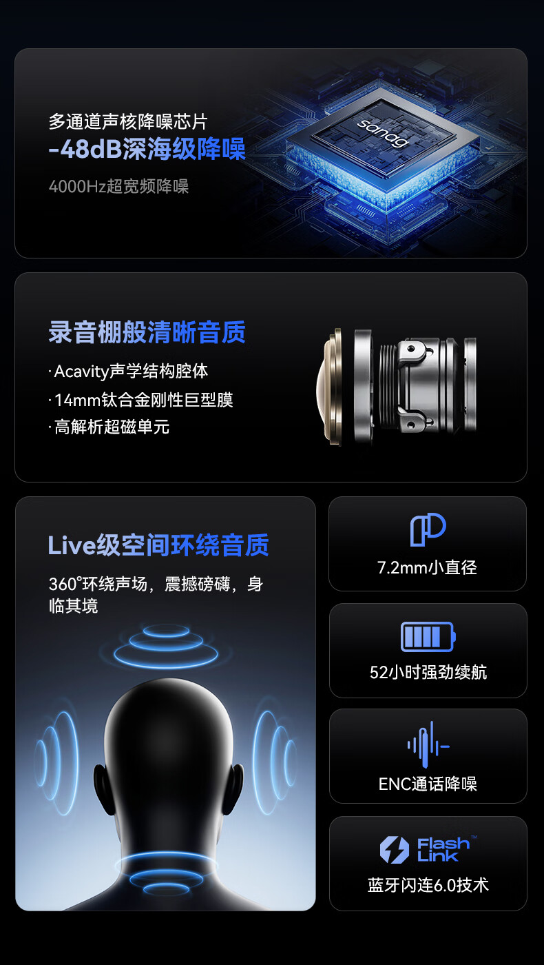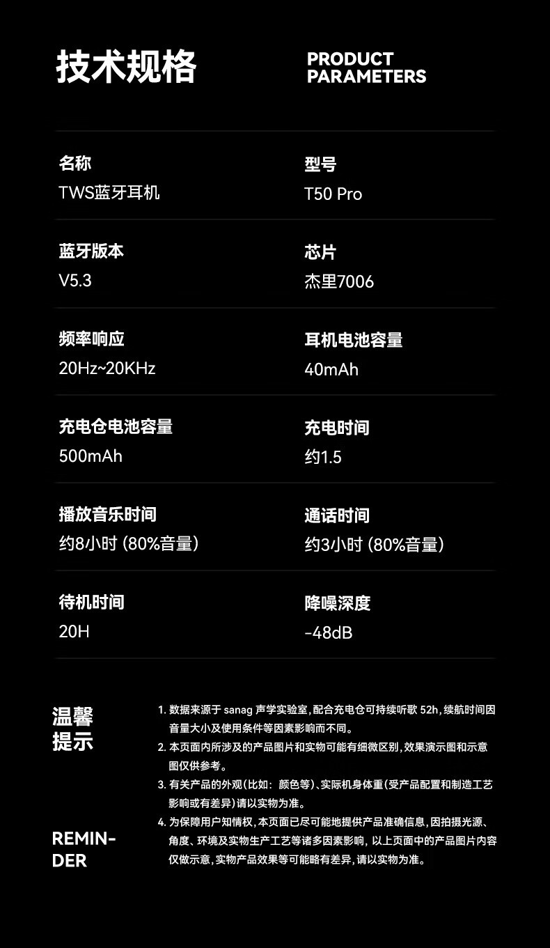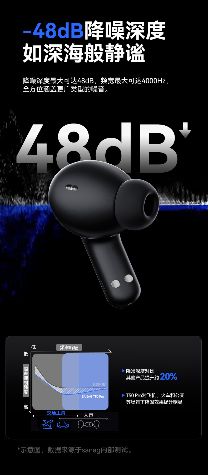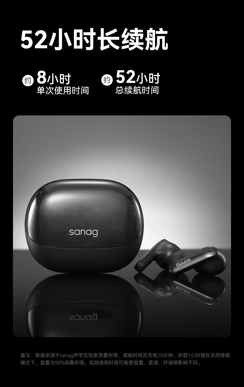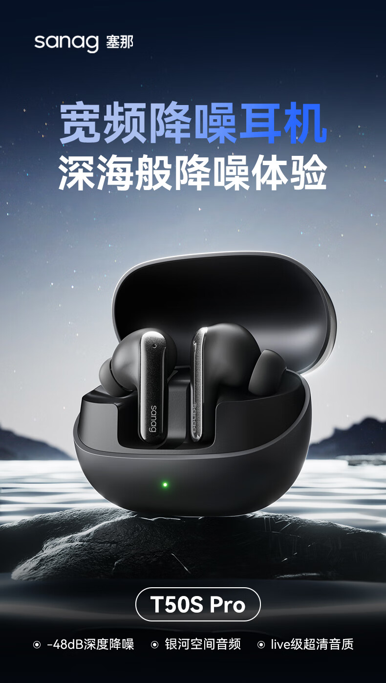 商品名称:SANAG塞那【2024降噪旗舰】真无线蓝牙耳机48dB主动降噪金标认证T50(单位:副) 白色