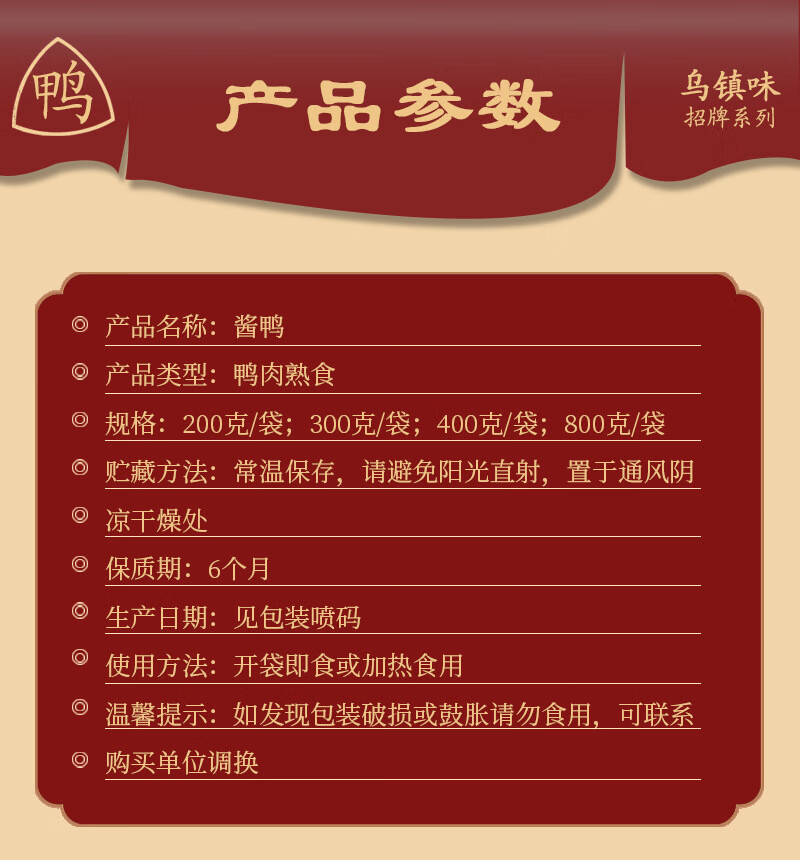 商品名称:【三珍斋】江南卤鸭300g(单位:袋) 绿色