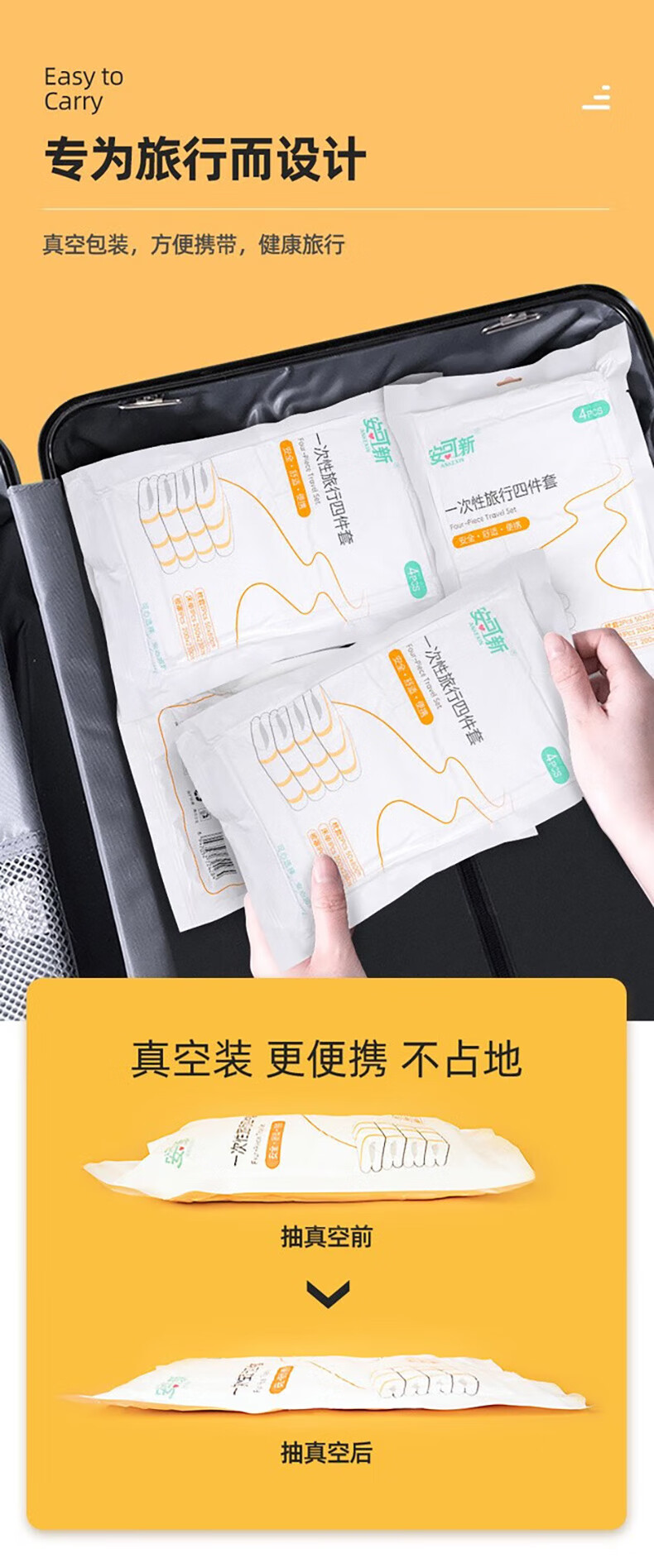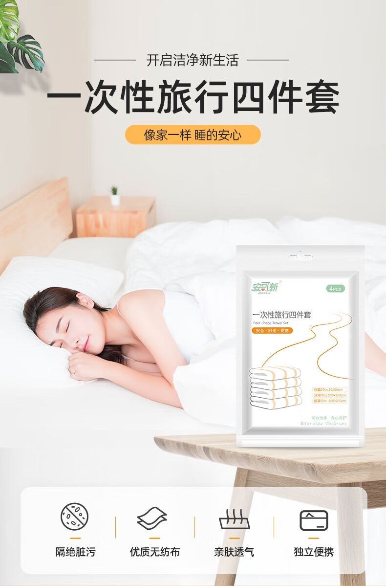 商品名称:安可新一次性被套床单枕套四件套便携旅游出差酒店隔脏双人套婴童母婴级 4件套*5套(单位:套) 白色