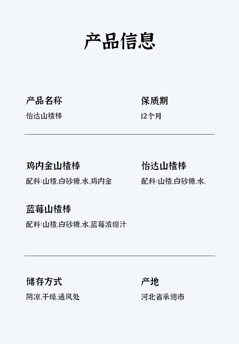 商品名称:怡达128g 酸甜美味原汁原味无添加 原味山楂棒*3袋 原味