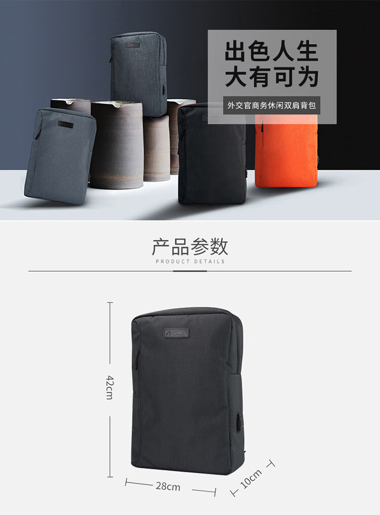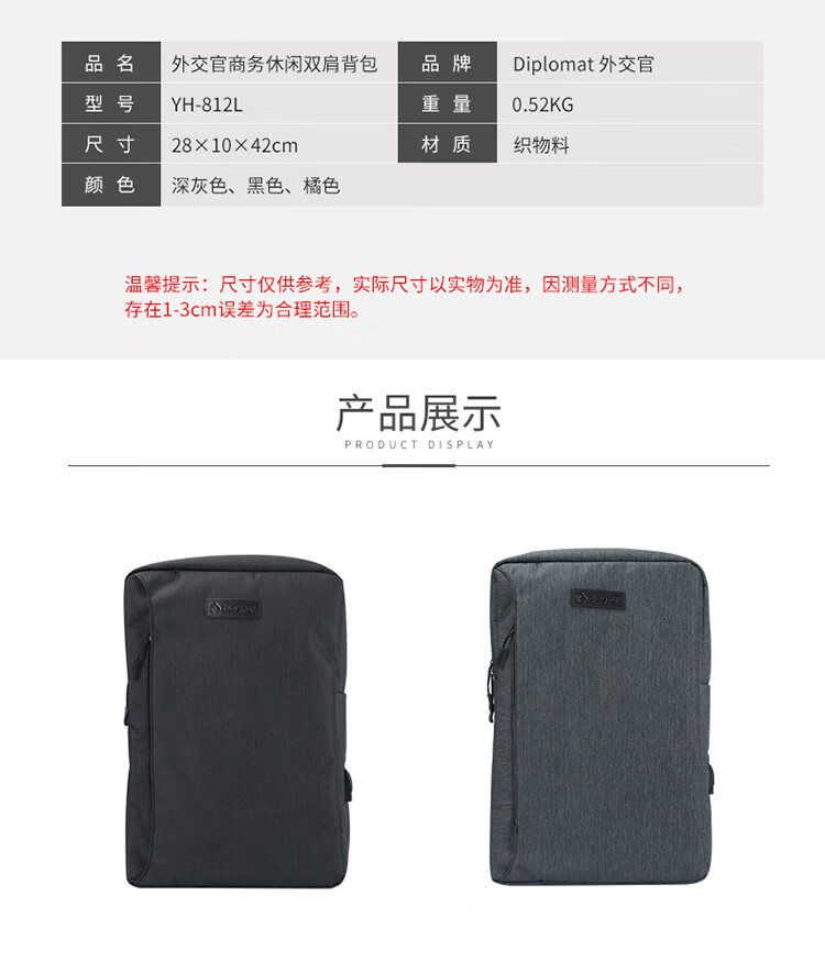 商品名称:外交官(Diplomat) 时尚商务双肩包 YH-812L-320 28*10*42cm 橘色(单位:个)