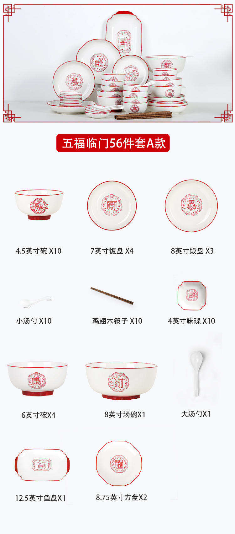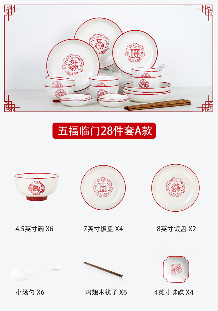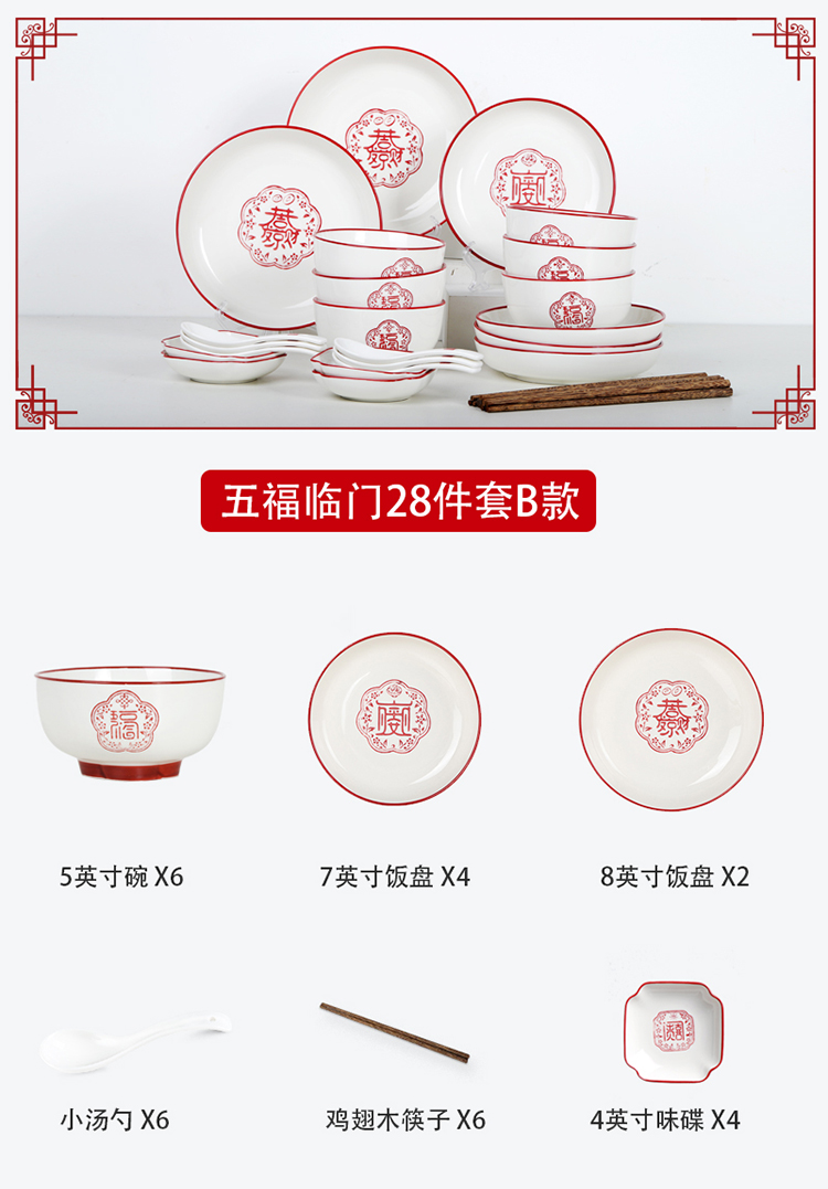 商品名称:顺祥陶瓷餐具五福临门套装餐具35头 B款 枫叶色 枫叶色