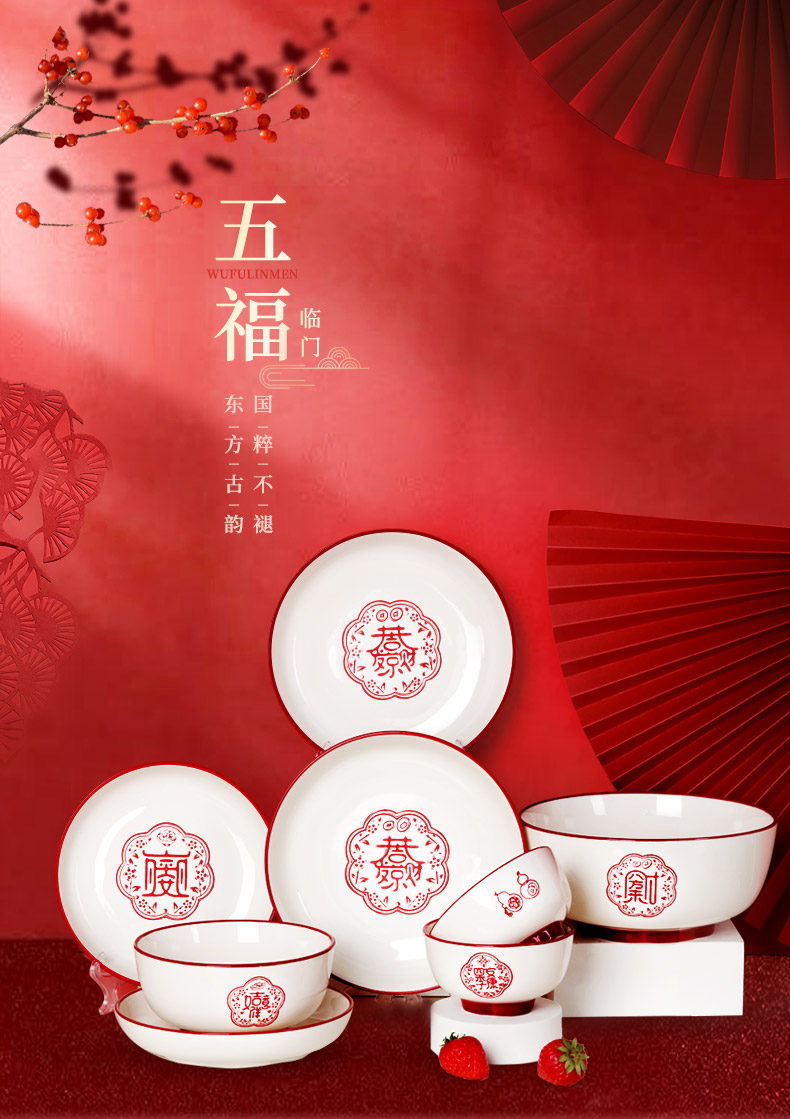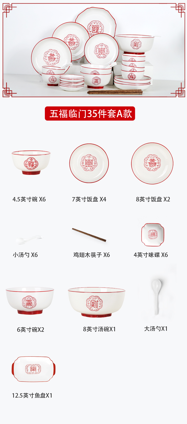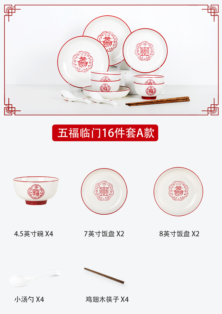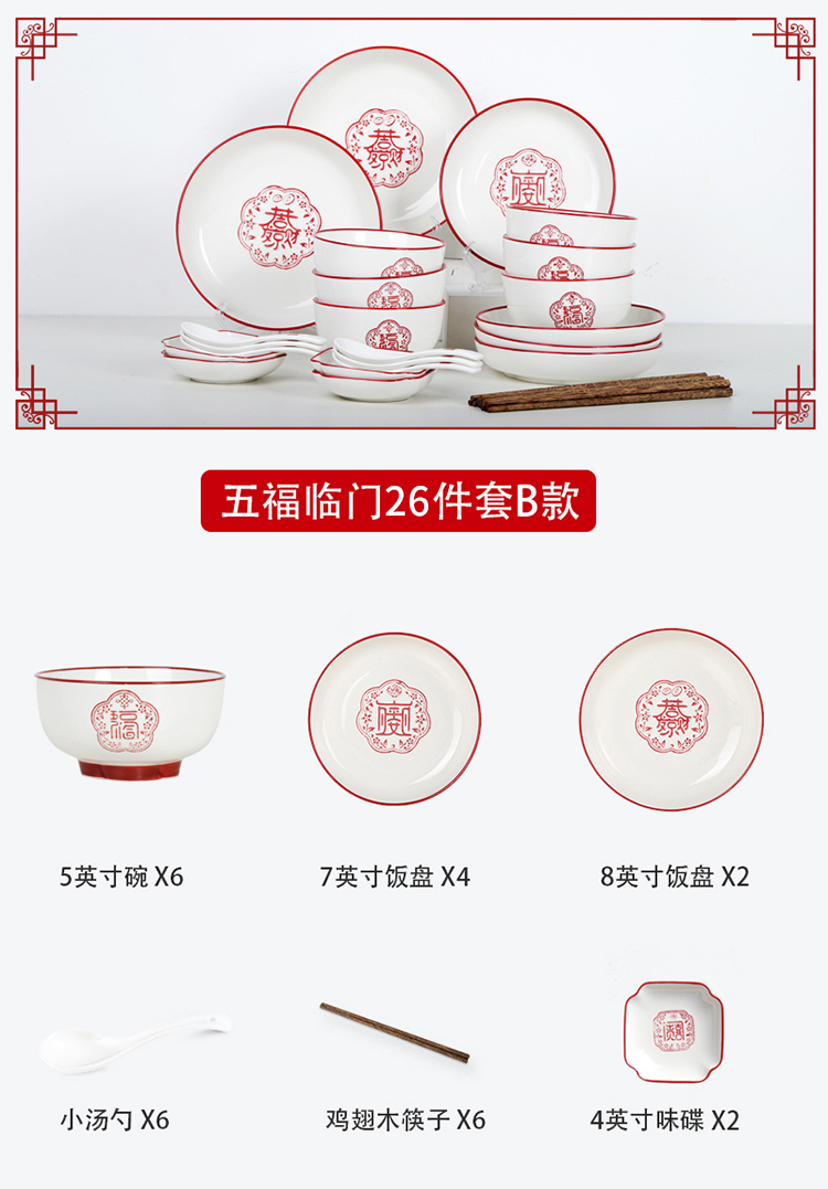 商品名称:顺祥陶瓷餐具五福临门套装餐具56头 B款 枫叶色 枫叶色