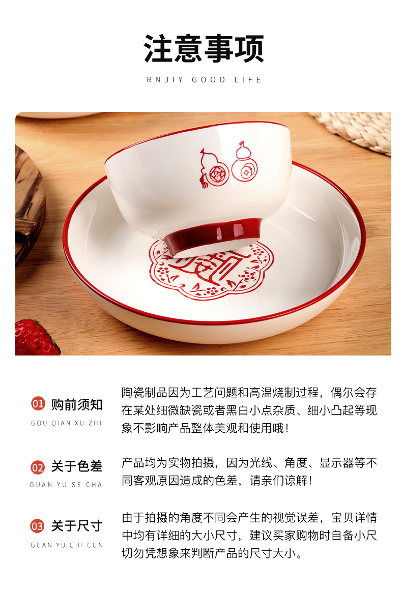 商品名称:顺祥陶瓷餐具五福临门8英寸八方来财碗1只装 枫叶色 枫叶色