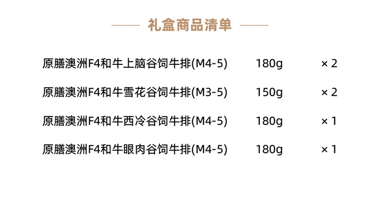 商品名称:原膳澳洲F4和牛原切牛排礼盒 888型 图片色