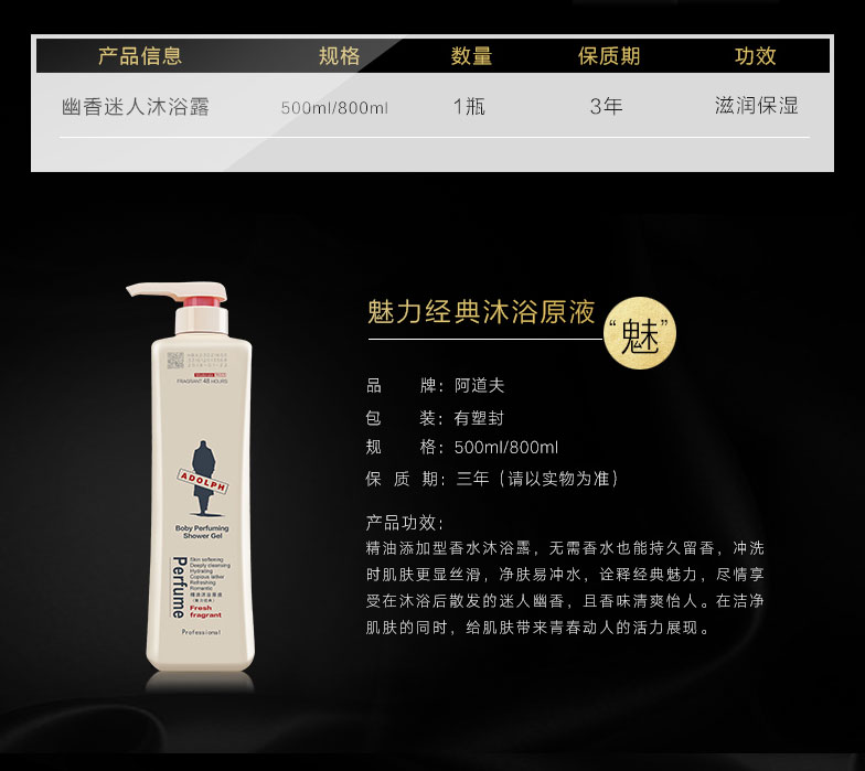 商品名称:阿道夫精油沐浴原液(魅力经典)800g爱的味道尺寸留香 本白色 本白色