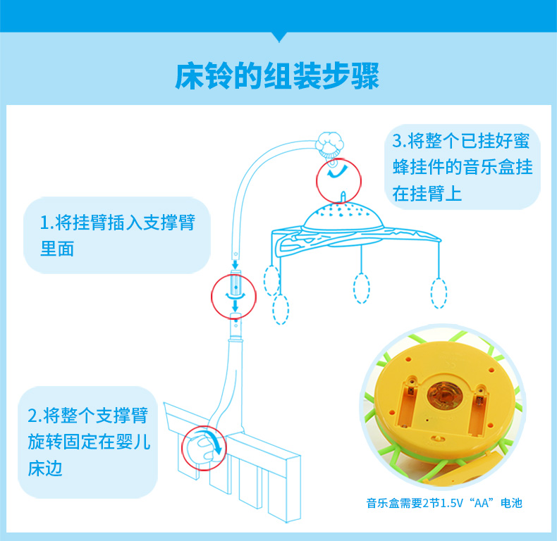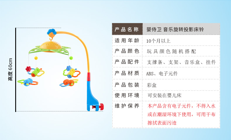 商品名称:婴侍卫 音乐旋转投影床铃 SL99008 随机