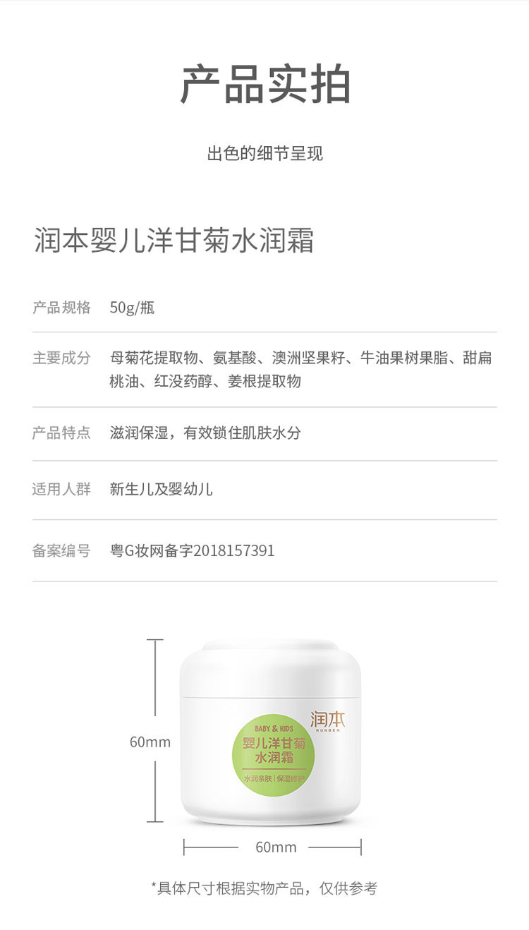 商品名称:润本婴儿洋甘菊水润霜50g 天蓝色