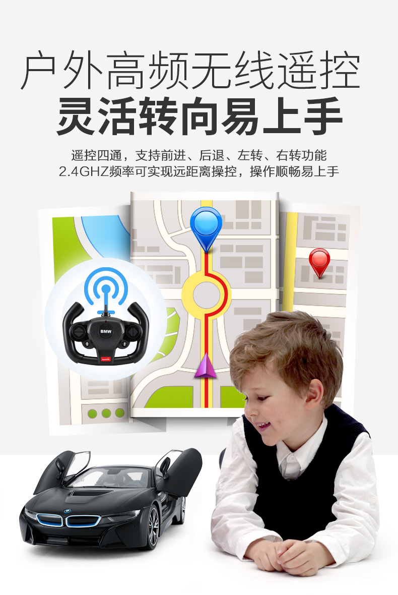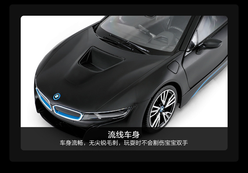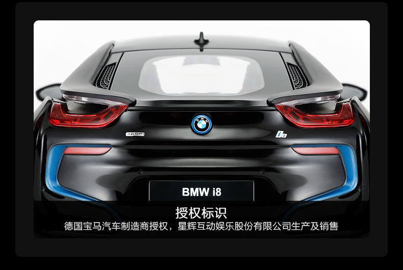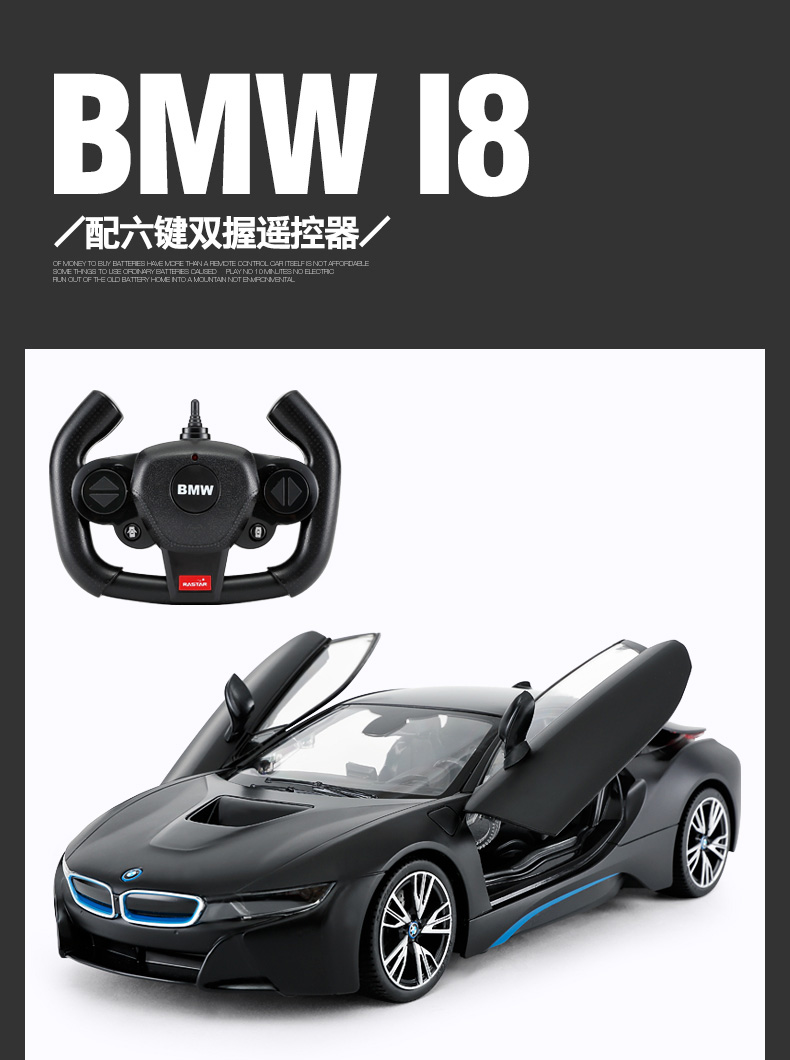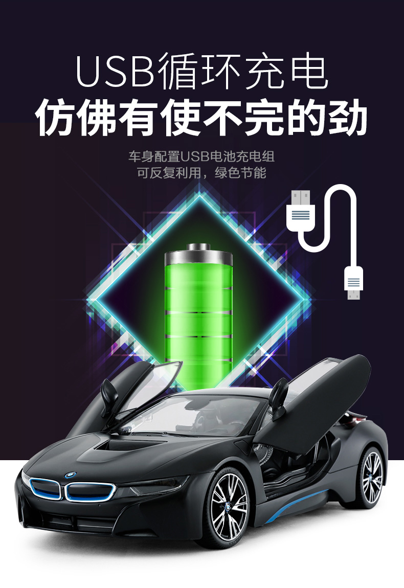 商品名称:RASTAR 星辉 1:14新宝马i8 充电遥控汽车模型 儿童玩具车单驱开门 外置充电 71060 黑/白/蓝 随机