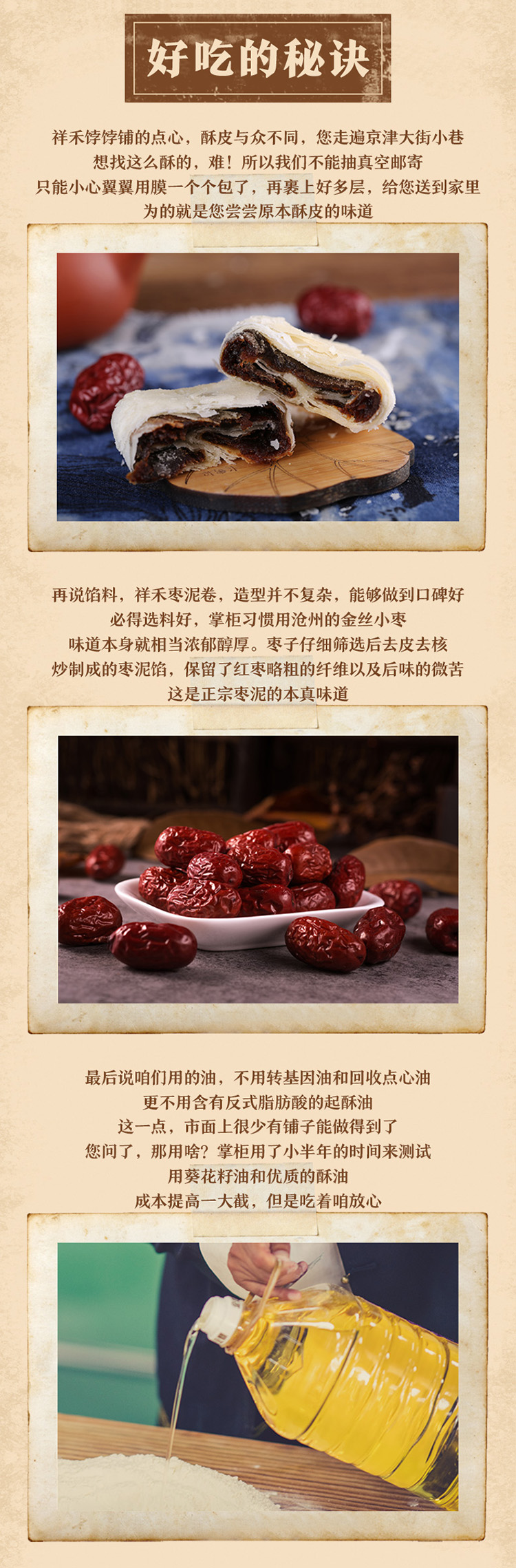 商品名称:祥禾饽饽铺枣泥卷酥传统手工老式红枣零食糕点下午茶老人休闲小吃500g(全国配送(港澳台,新疆、上海等疫情地区除外)) 红色