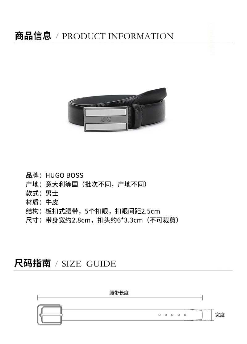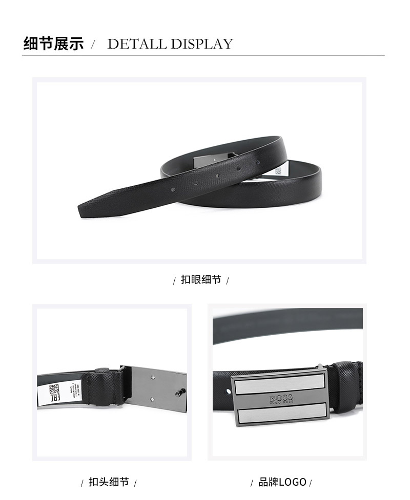 商品名称:Hugo Boss 雨果博斯 男士牛皮板扣式窄版皮带 Z11100551269(单位:条) 黑色