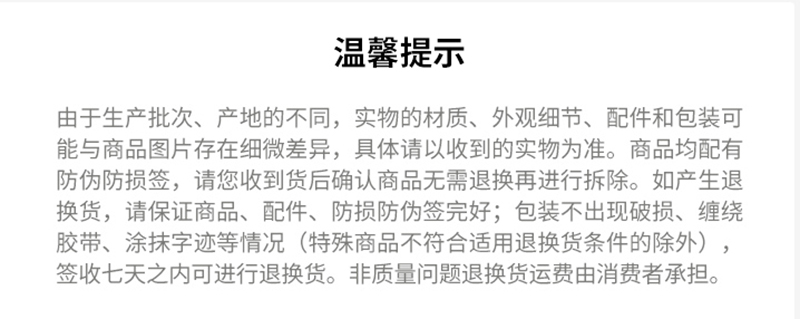 2.签收商品隔日起七日内提交退货申请,2-3天快递员与您联系安排取回商品