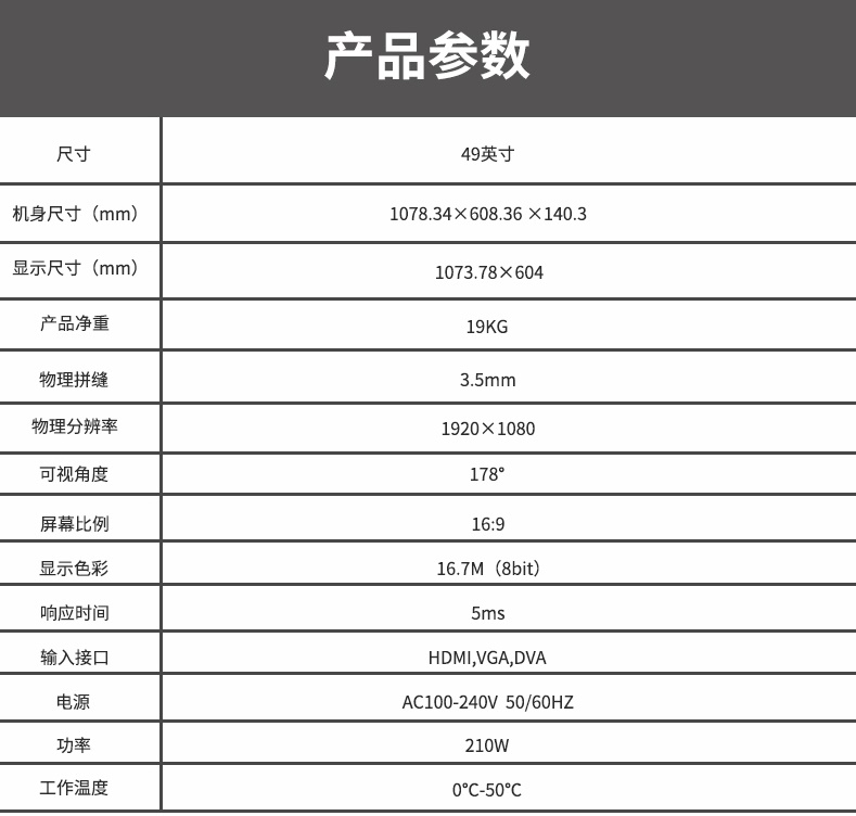 商品名称:洛菲特49英寸3.5mm显示器LFTD49PB1 黑色
