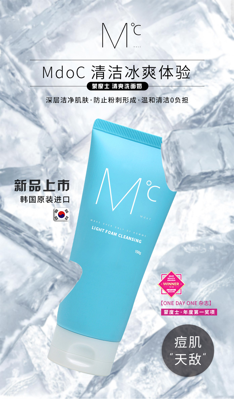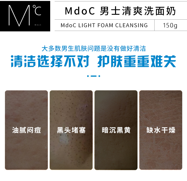 商品名称:蒙度士(MdoC) 男士控油清爽洗面奶150g (单位:支)水蓝色