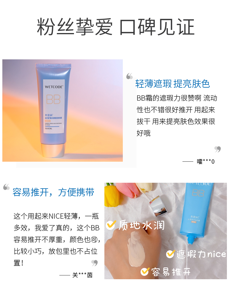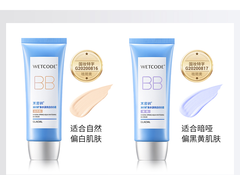 商品名称:水密码冰川矿泉水漾优白BB霜60g(单位:支) 自然色