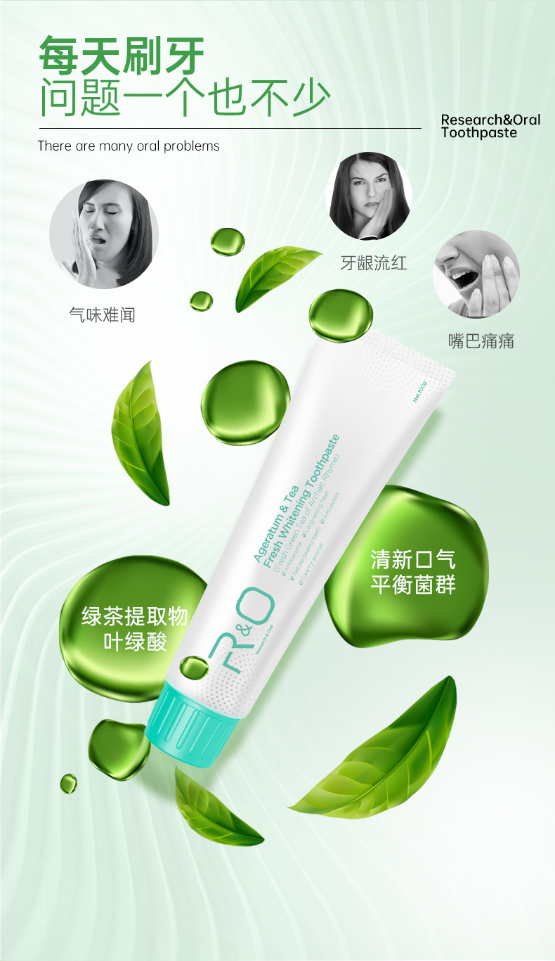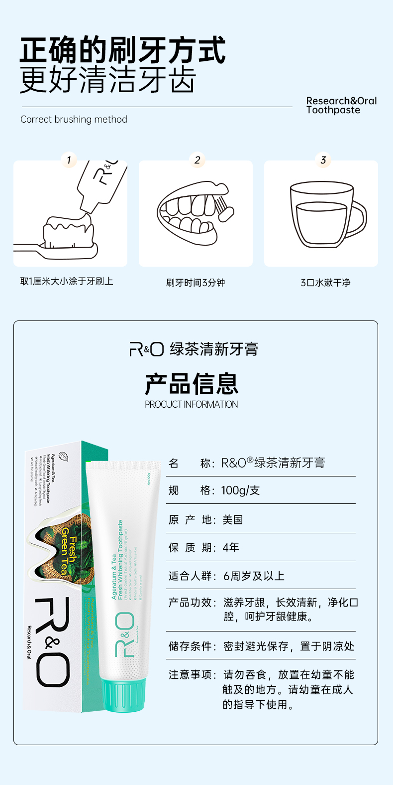 商品名称:R&O绿茶清新牙膏100g 支 水蓝色