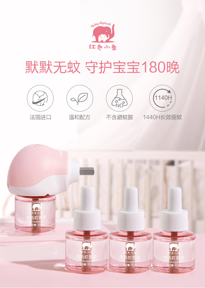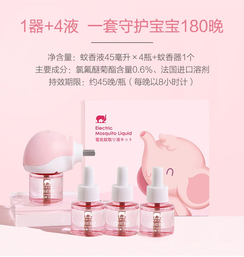 商品名称:红色小象电热蚊香液套装一拖4(单位:套) 粉色