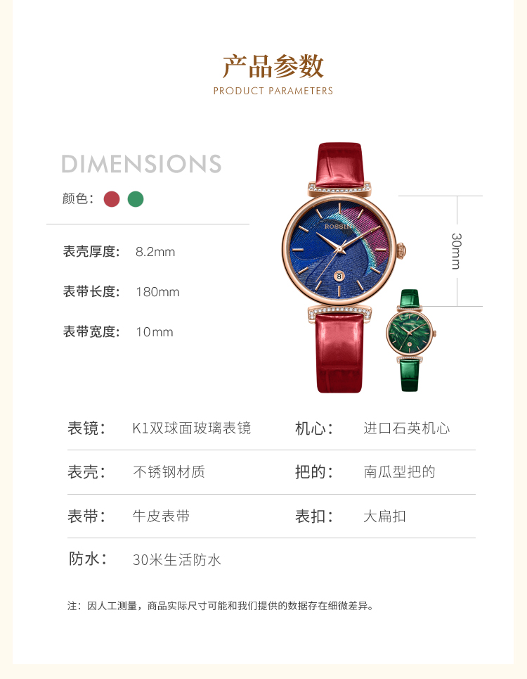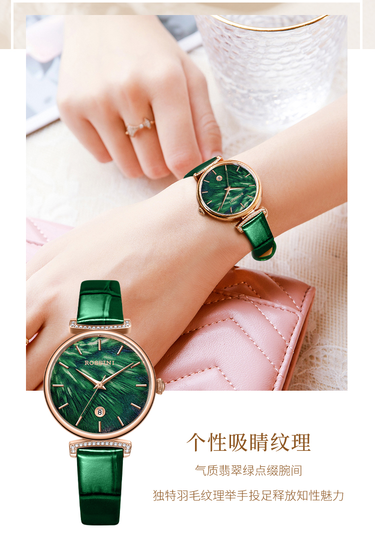 商品名称:Rossini罗西尼 曲美系列 石英手表简约优雅女表50034G08D(单位:块) 绿色