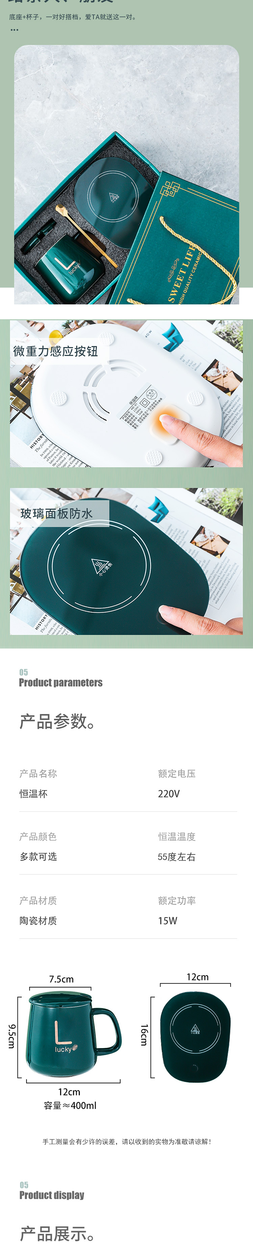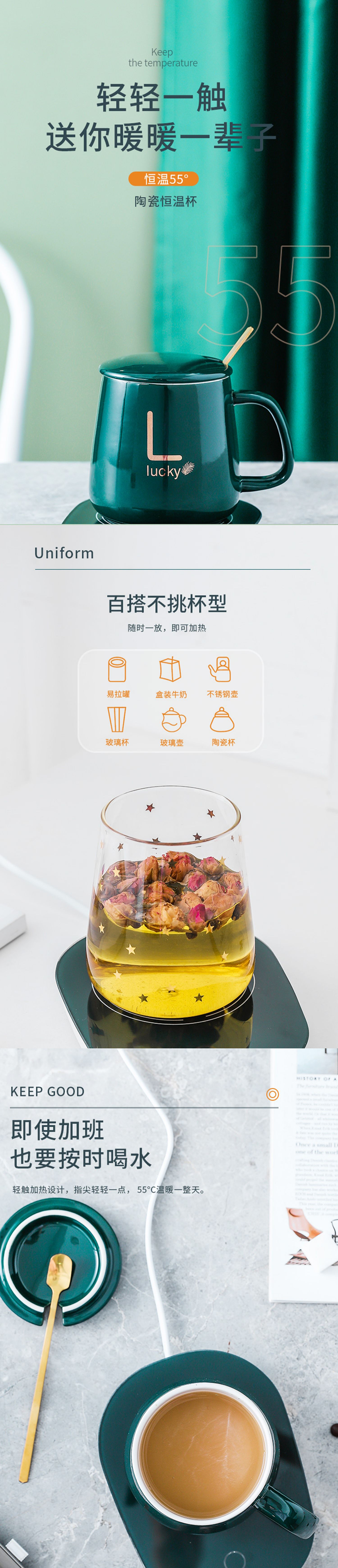 商品名称:锦知兴恒温陶瓷杯420ML(单位:套) 绿色