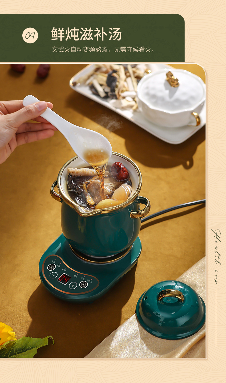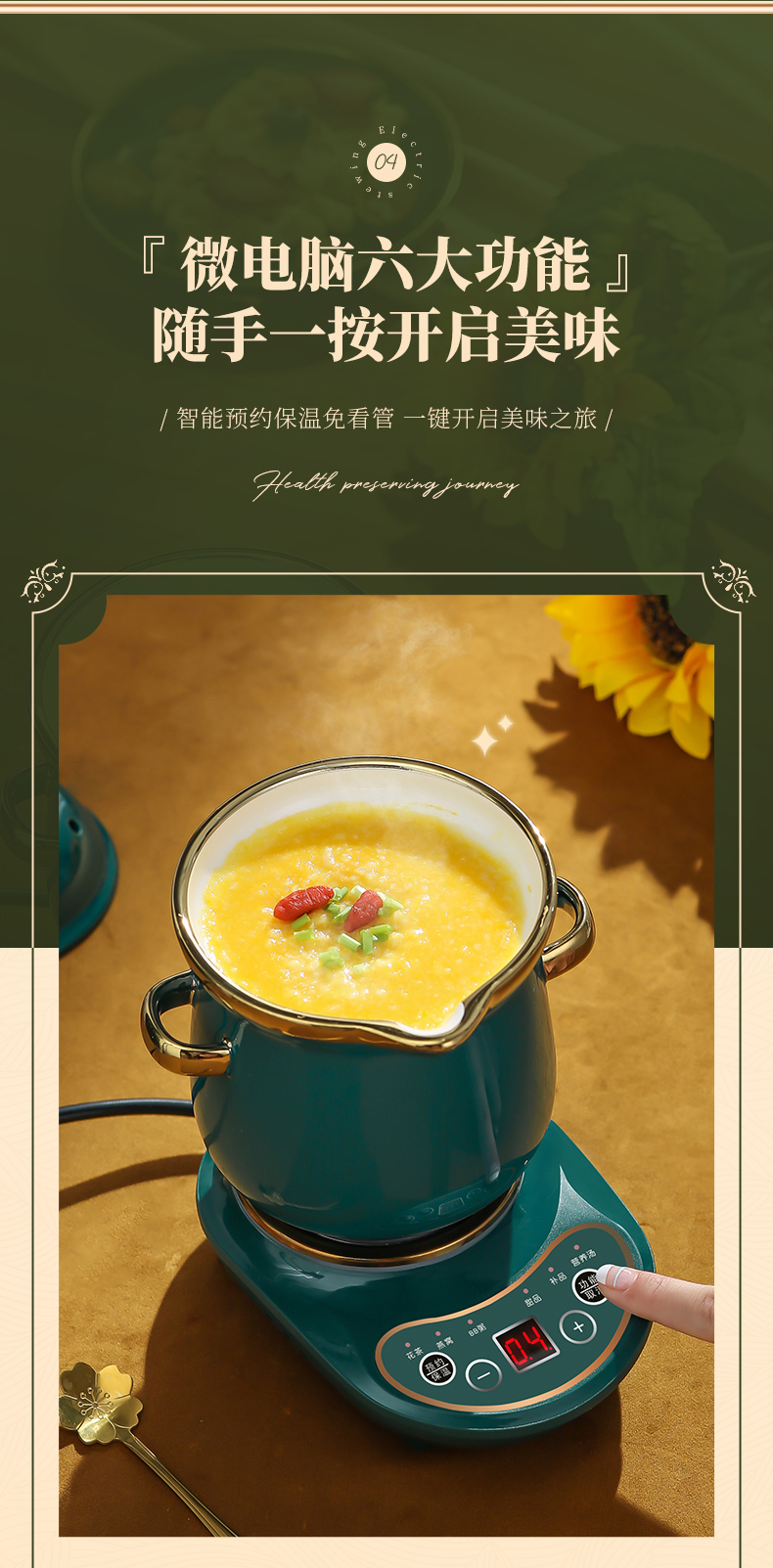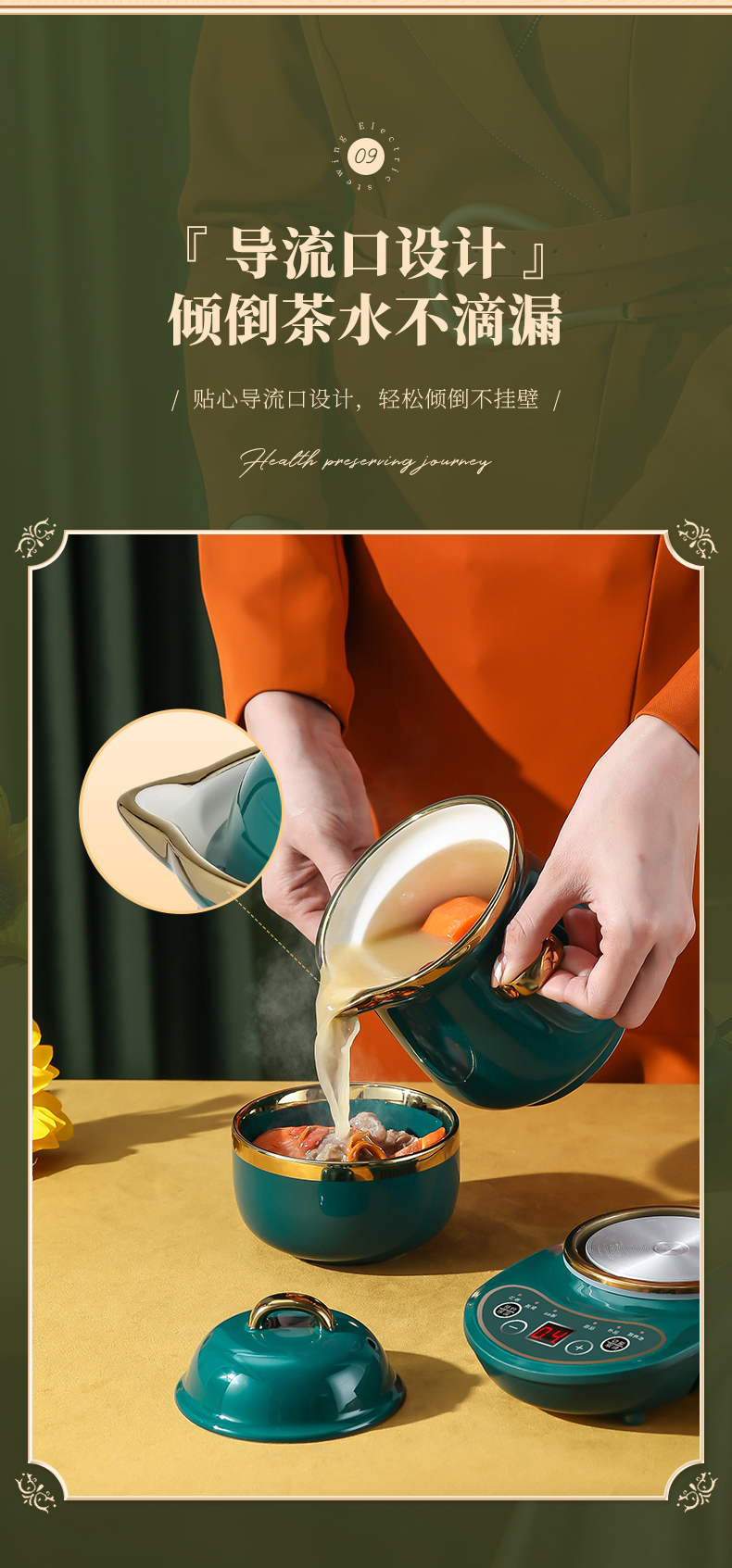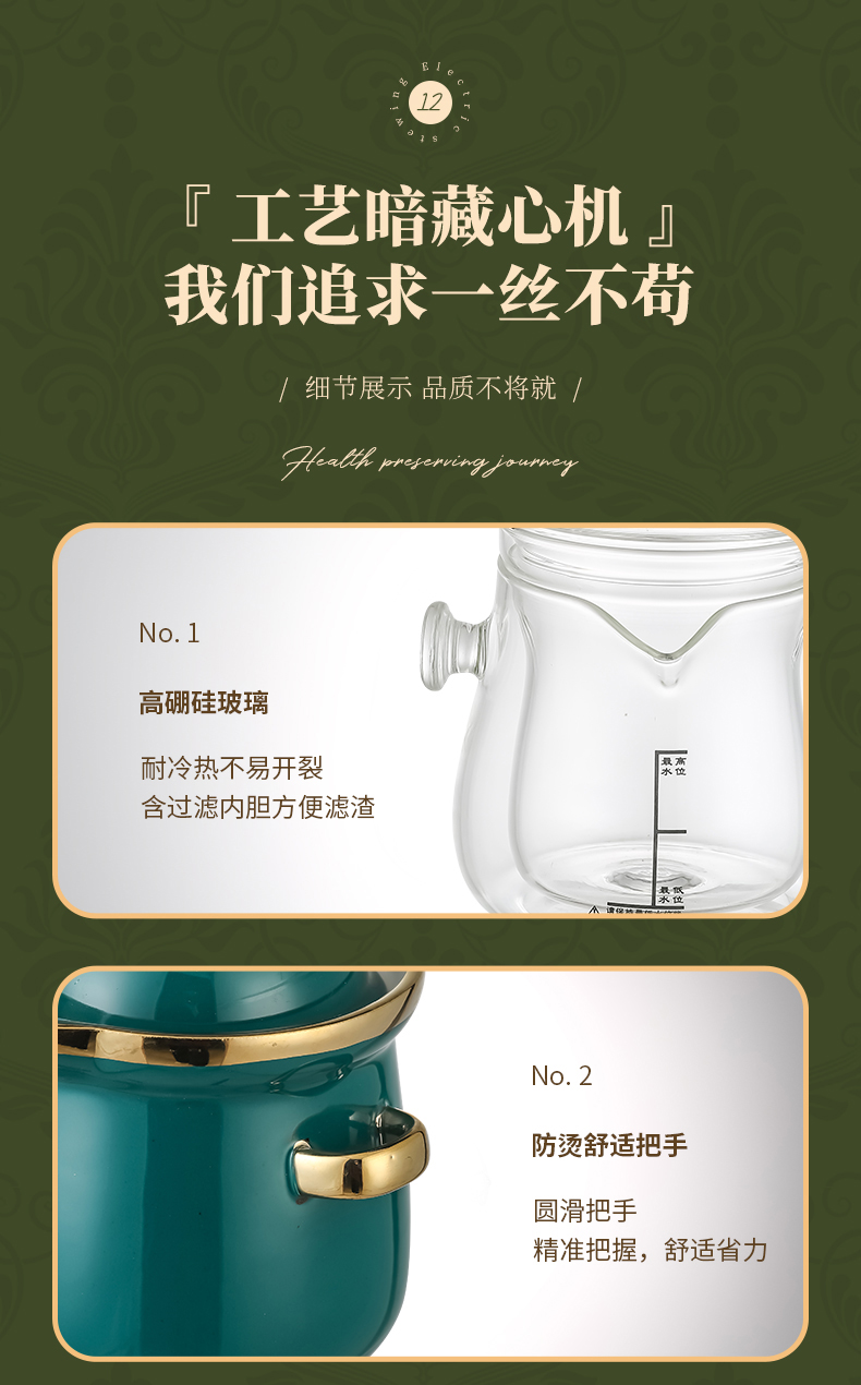商品名称:锦知兴复古双耳养生双煲陶瓷煲(1.0L)/玻璃煲(0.6L)(单位:套) 绿茶