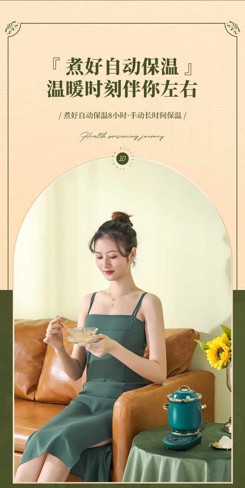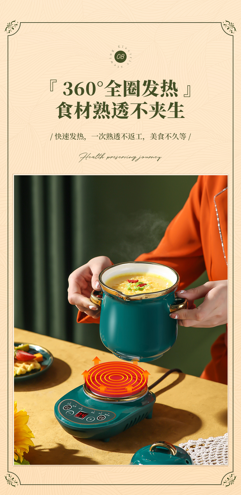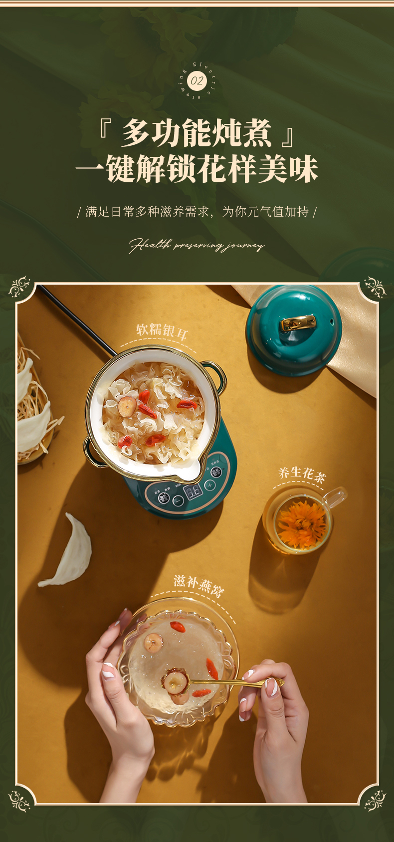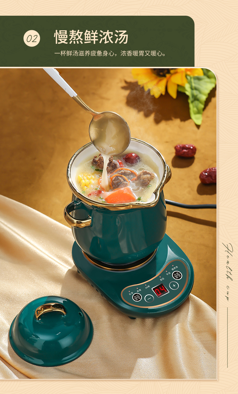 商品名称:锦知兴复古双耳养生双煲陶瓷煲(1.0L)/玻璃煲(0.6L)(单位:套) 绿茶