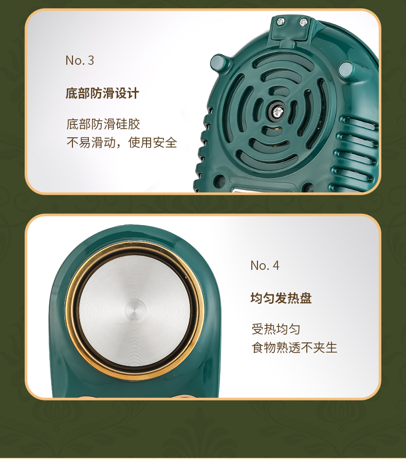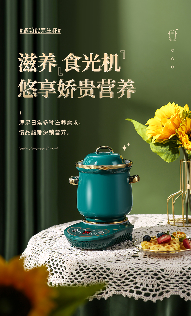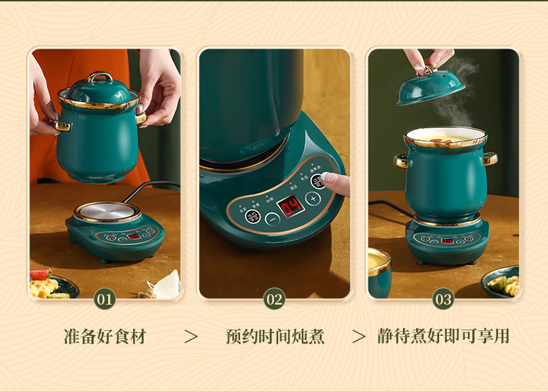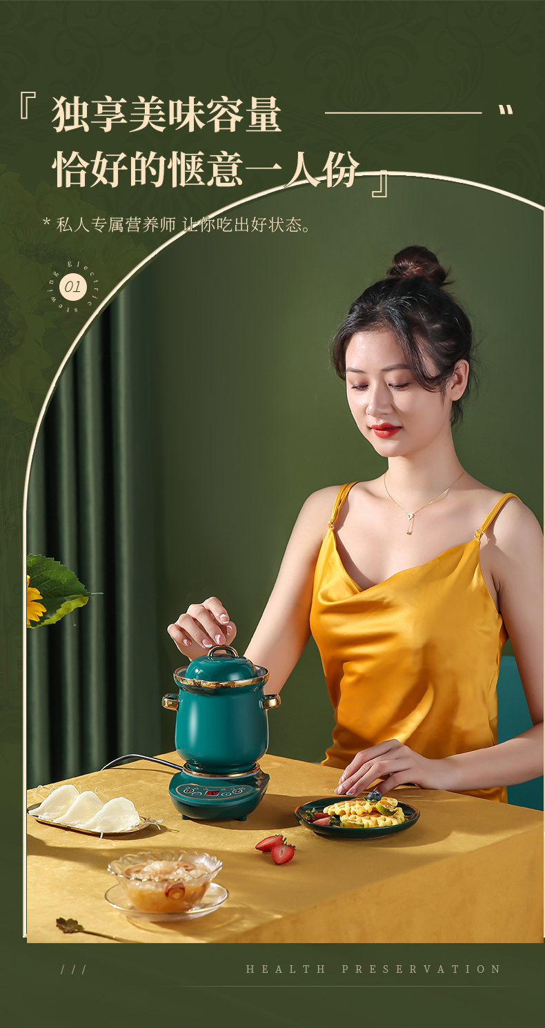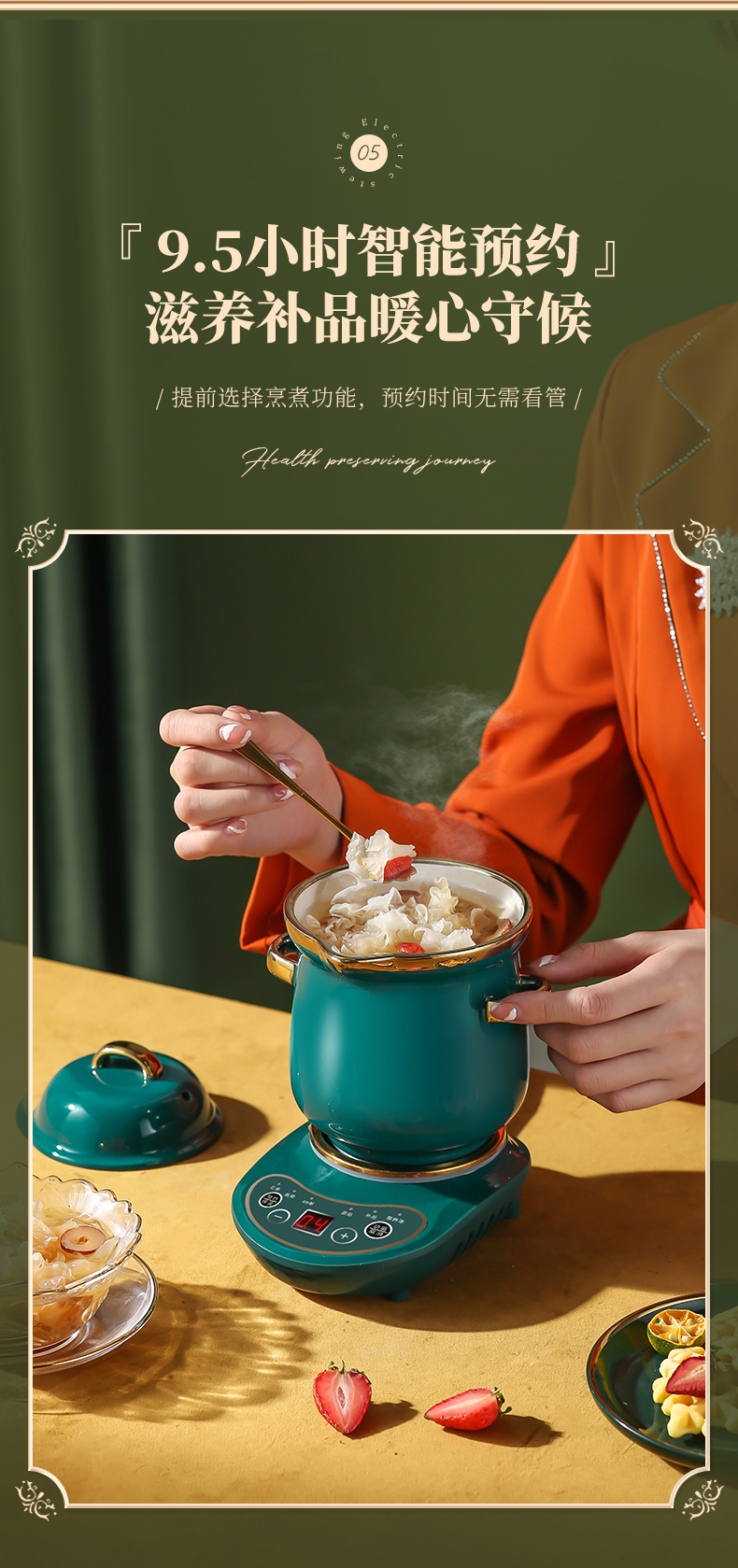商品名称:锦知兴复古双耳养生双煲陶瓷煲(1.0L)/玻璃煲(0.6L)(单位:套) 绿茶