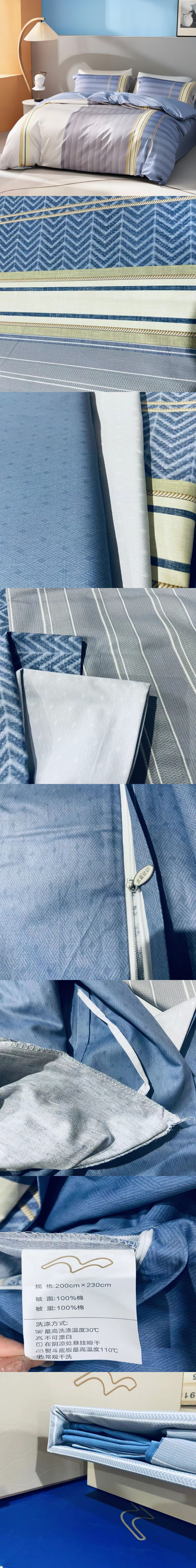 商品名称:水星家纺四件套2m*2.3m长绒棉全棉面料 尚·轻静 适用于1.5m床 条纹简约风 深蓝色