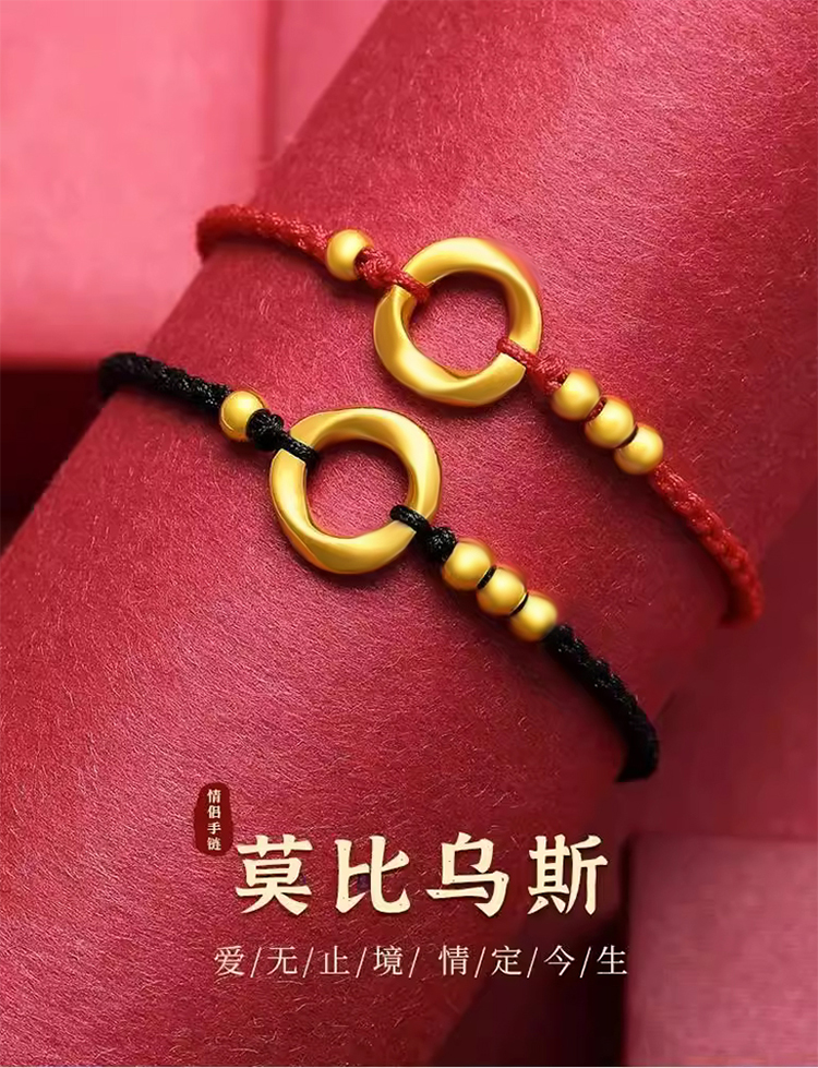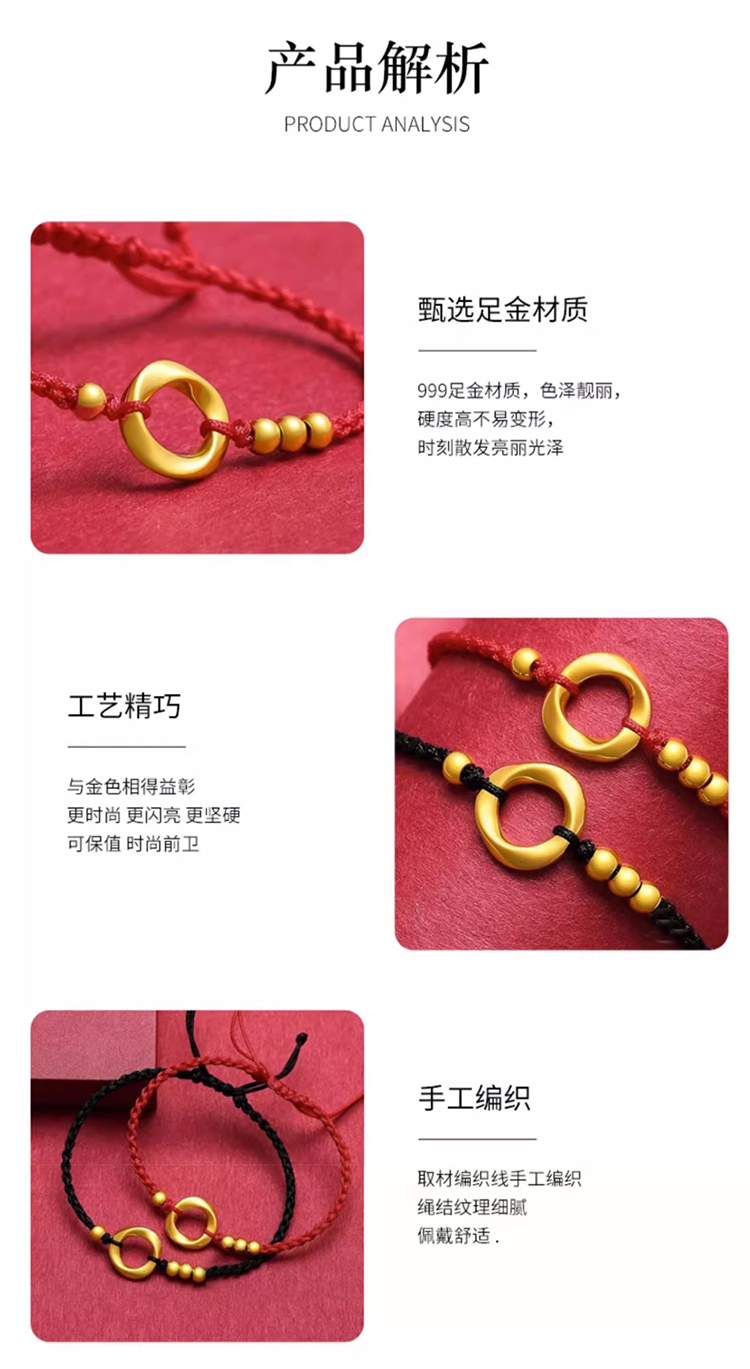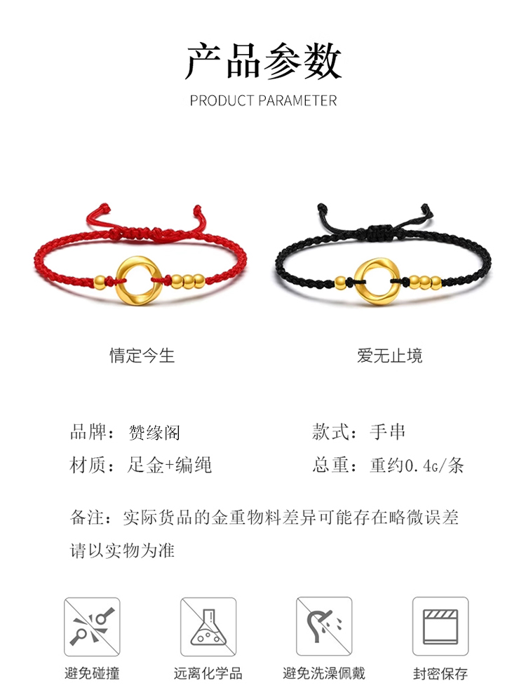 商品名称:赞缘阁 黄金足金莫比乌斯环精编手链黑红情侣款(单位:件) 红色