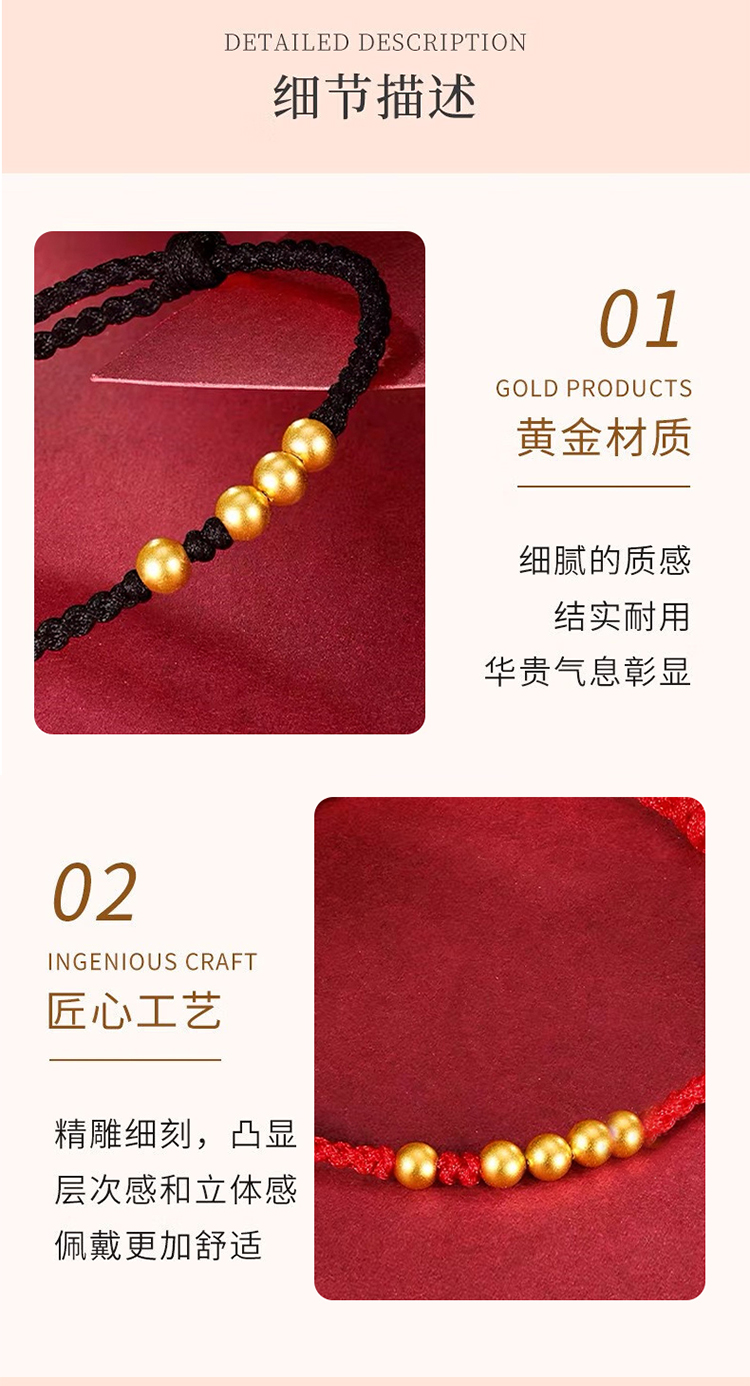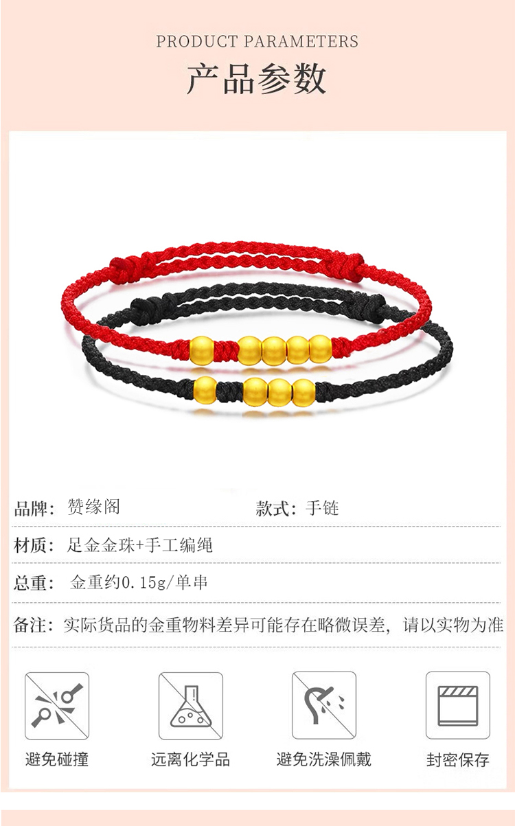 商品名称:赞缘阁 黄金足金转运珠1314情侣手链(单位:件) 红色