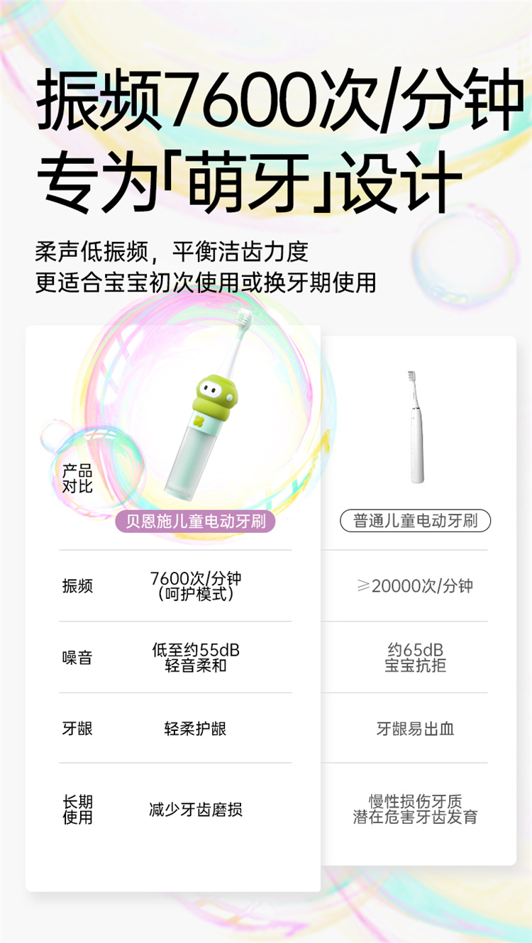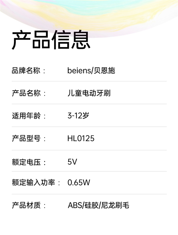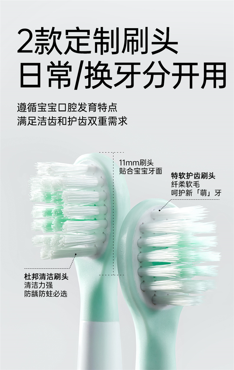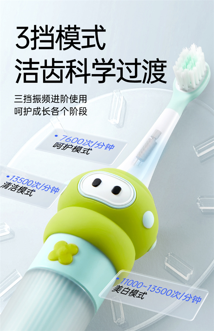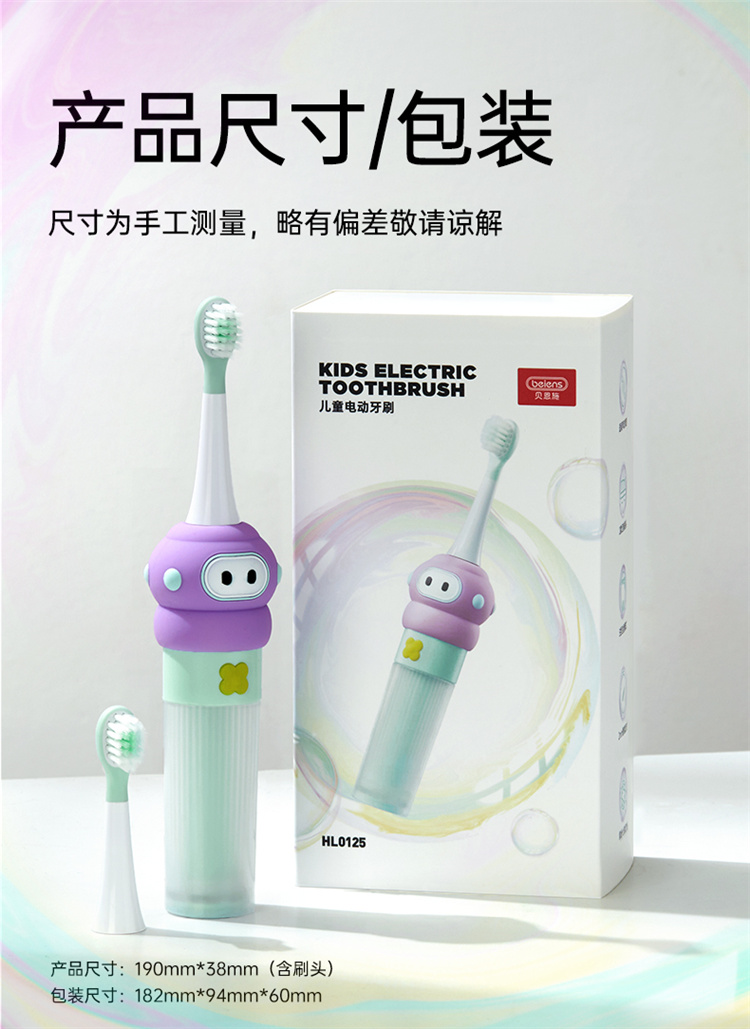 商品名称:贝恩施儿童电动牙刷3岁以上3到6岁小孩专用全自动 HL0125 1支装+1个替换刷头(单位:支) 埃尔托绿