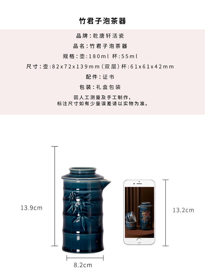 商品名称:乾唐轩活瓷泡茶器1壶2杯系列随行茶具茶杯 竹君子泡茶器(单位:套) 颜色随机