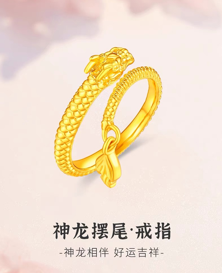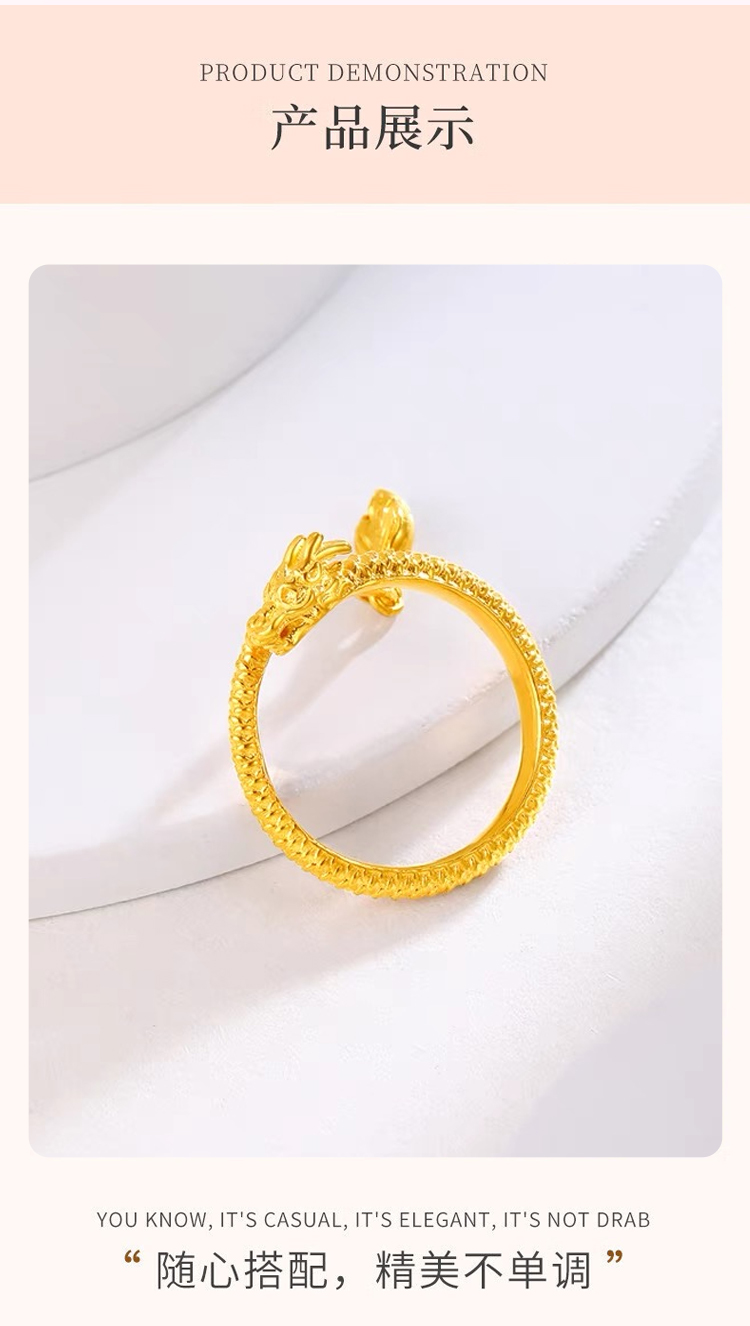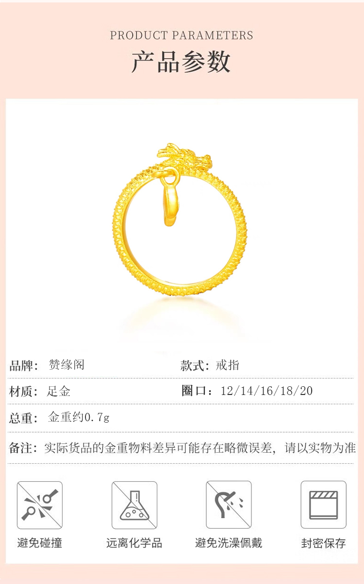 商品名称:赞缘阁 黄金足金神龙摆尾戒指 单位:件 黄色20#0.7-0.8g