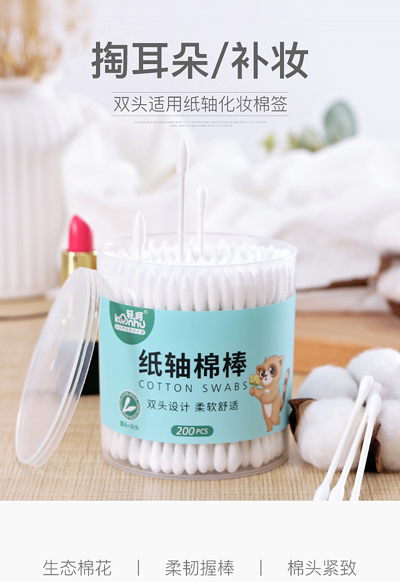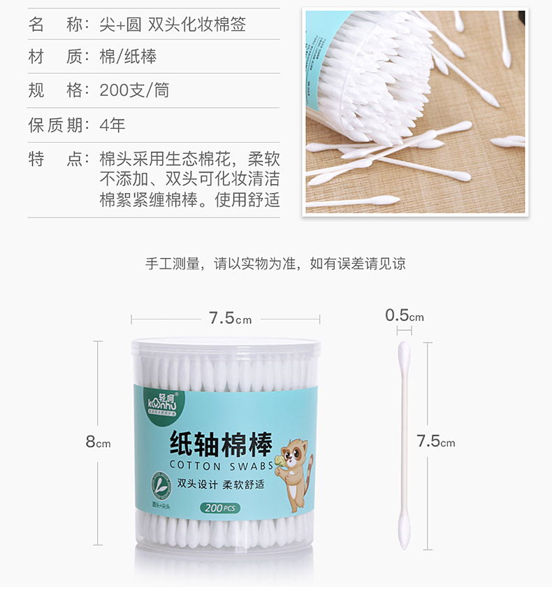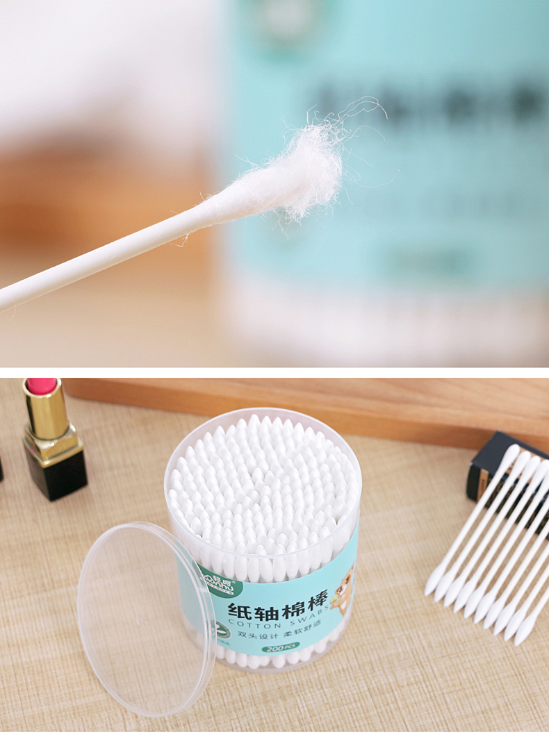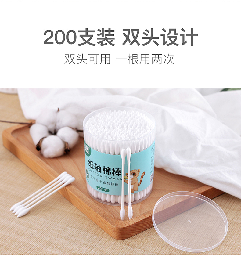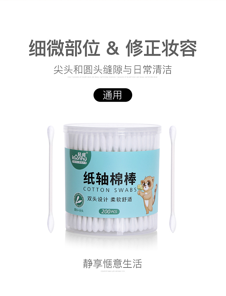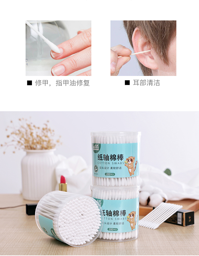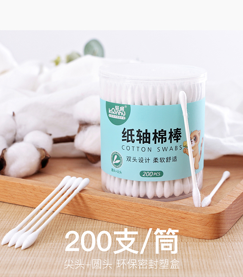 商品名称:轻呵 纸轴化妆棉棒200支 (尖+圆头) ,200支/筒,天然优质棉花、进口原纸 白色