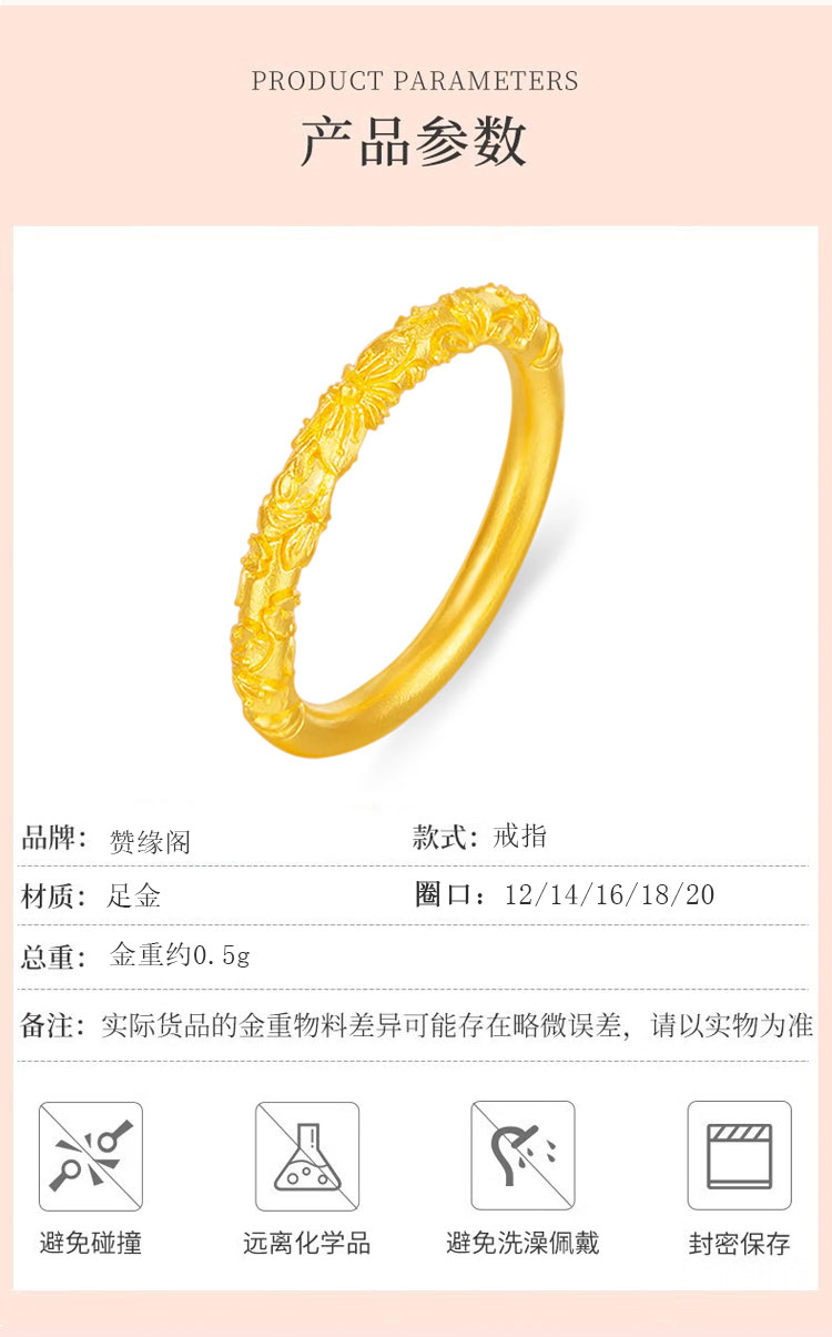 商品名称:赞缘阁 黄金足金樱花戒指 单位:件 14#0.5-0.6g