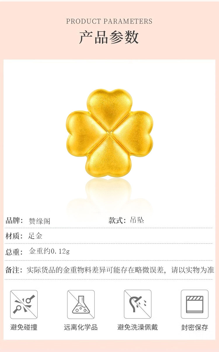 商品名称:赞缘阁 黄金足金四叶草吊坠SYC012 单位:件 0.12-0.16g