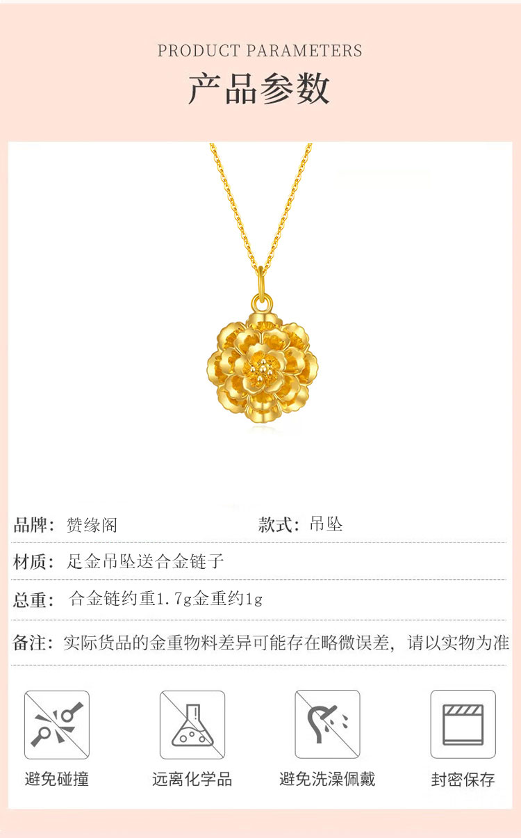 商品名称:赞缘阁 黄金足金富贵花吊坠FGH01 单位:件 1-1.1g