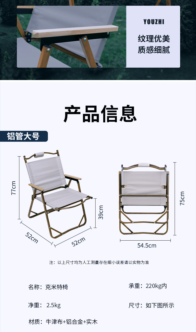 商品名称:瑟石SESONE 克米特折叠椅 单位:把 自然色 铁管大号