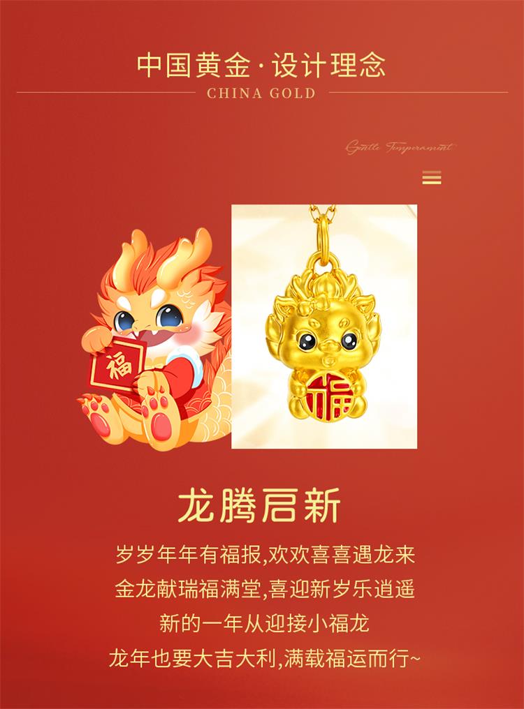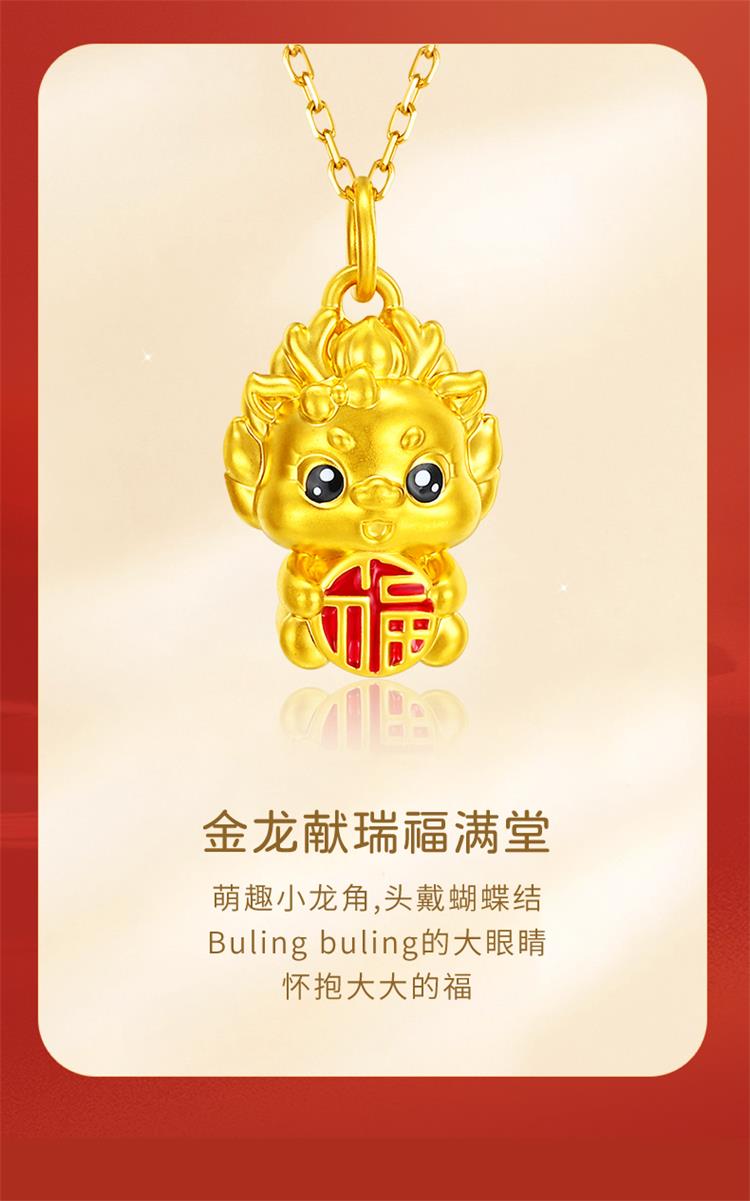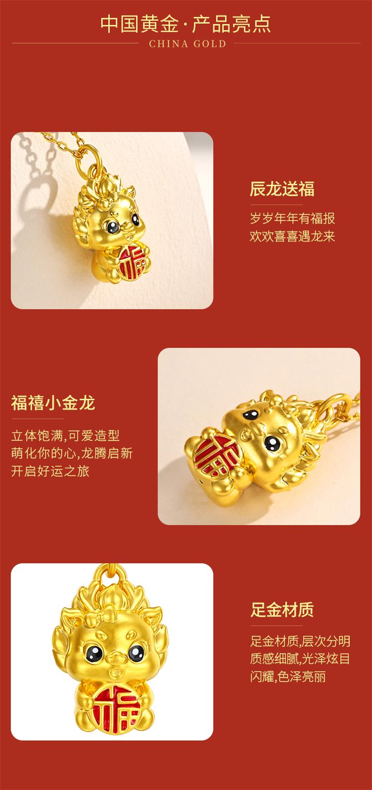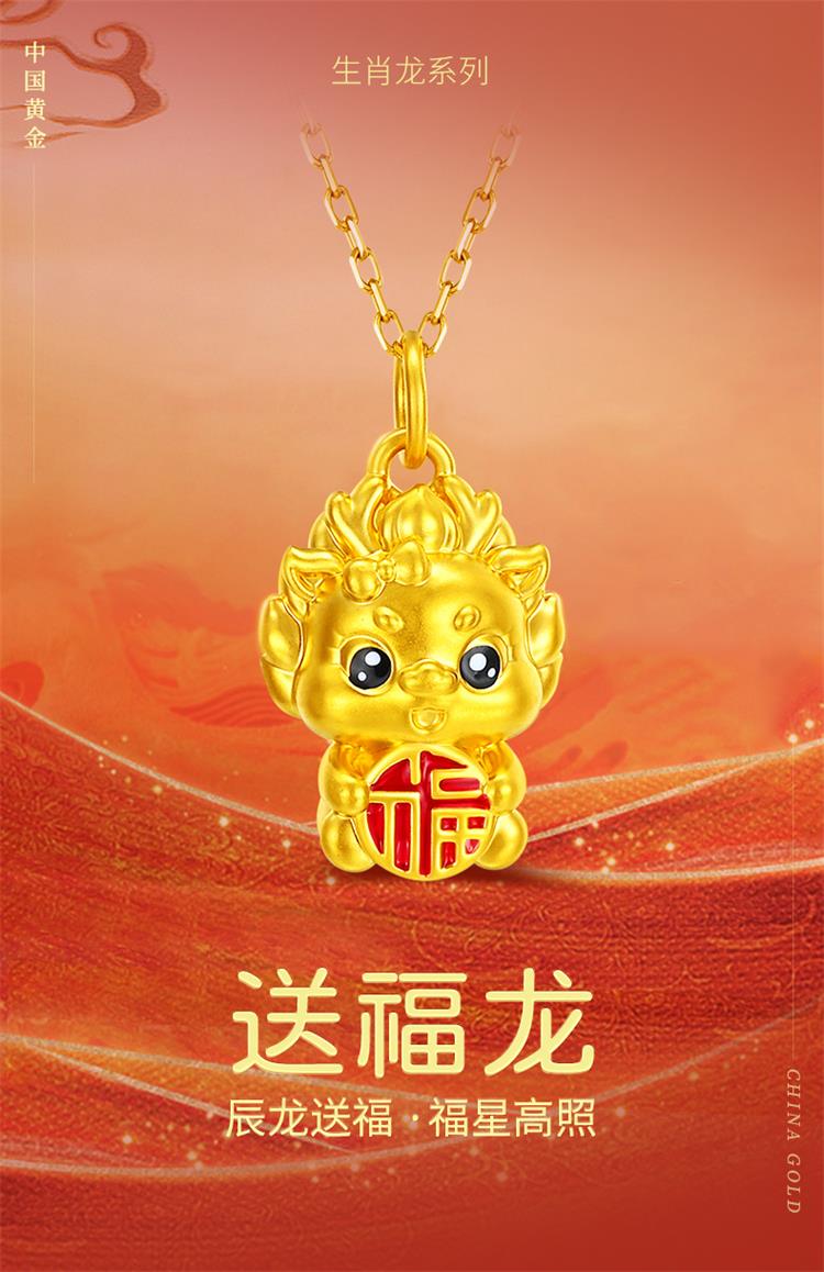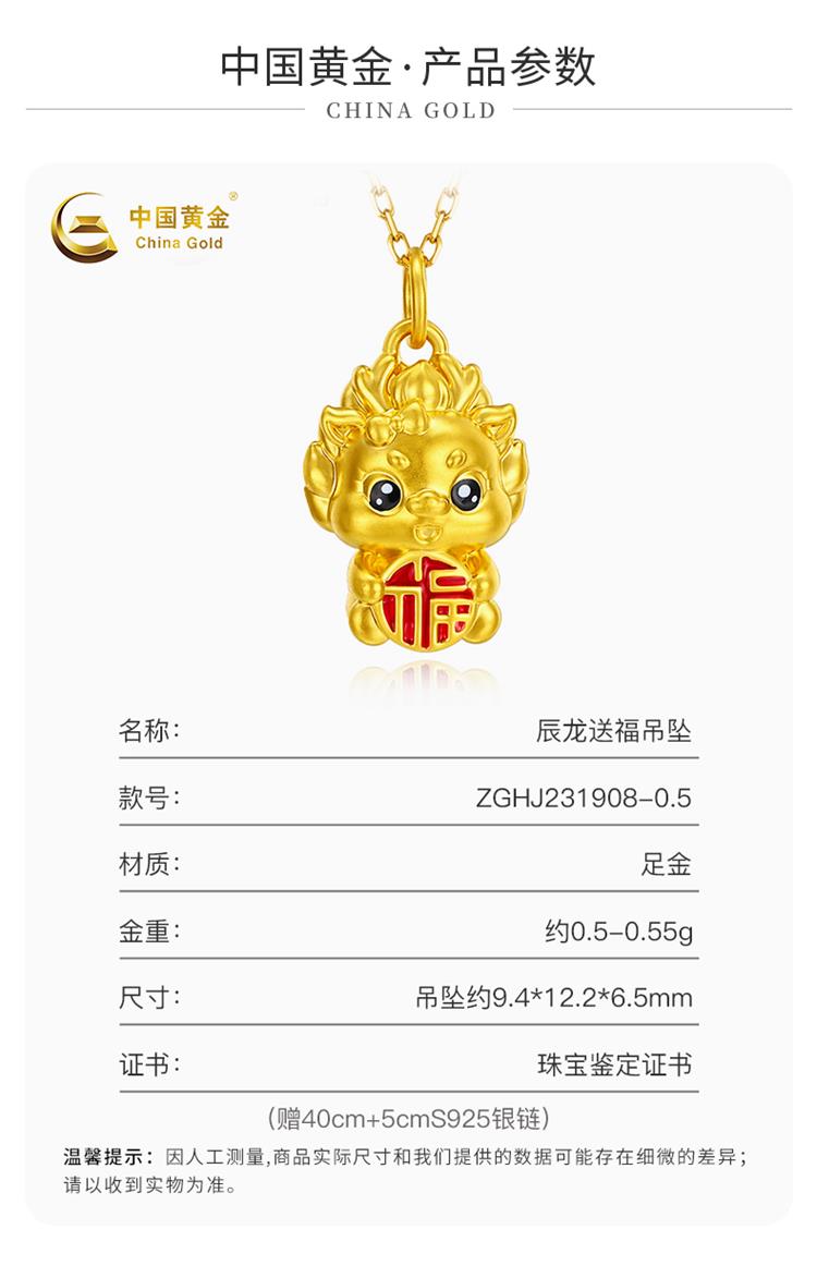 商品名称:中国黄金 足金辰龙送福吊坠 ZGHJ231908-0.5 单位:件 金色