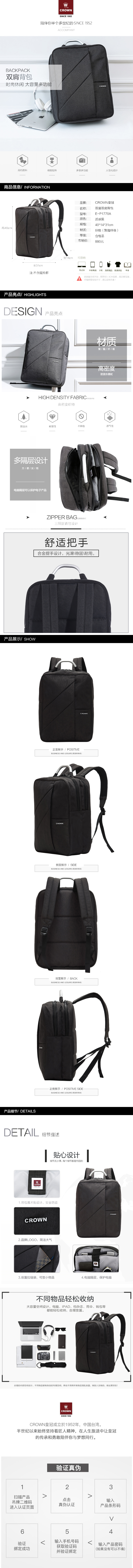商品名称:皇冠CROWN单层双肩背包E-P1770A 高密度防泼水面料 高密度防泼水面料 单位:个 黑色