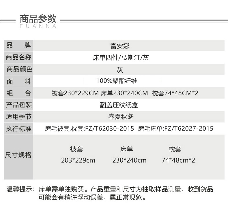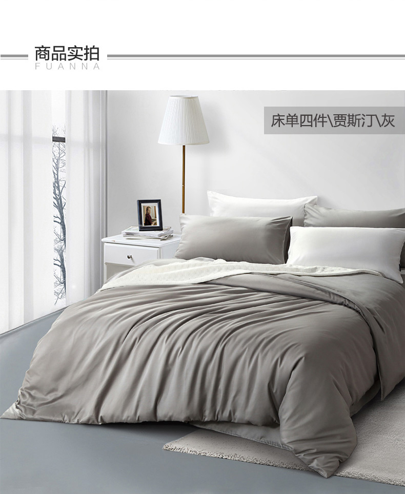 商品名称:富安娜 床单四件套 贾斯汀·灰 203*229cm 灰色(单位:套)