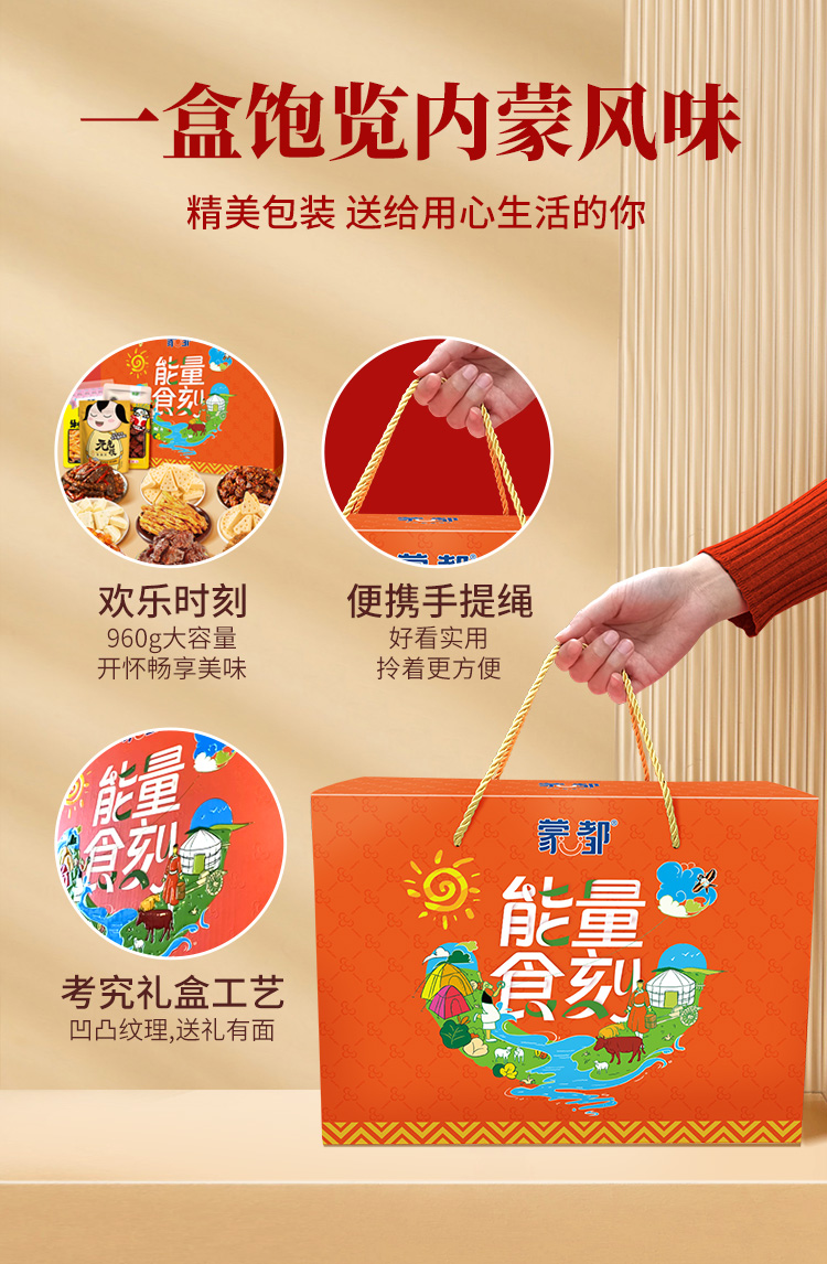 商品名称:蒙都能量时刻内蒙古特产牛肉干零食礼包960g(单位:盒) 山茶花