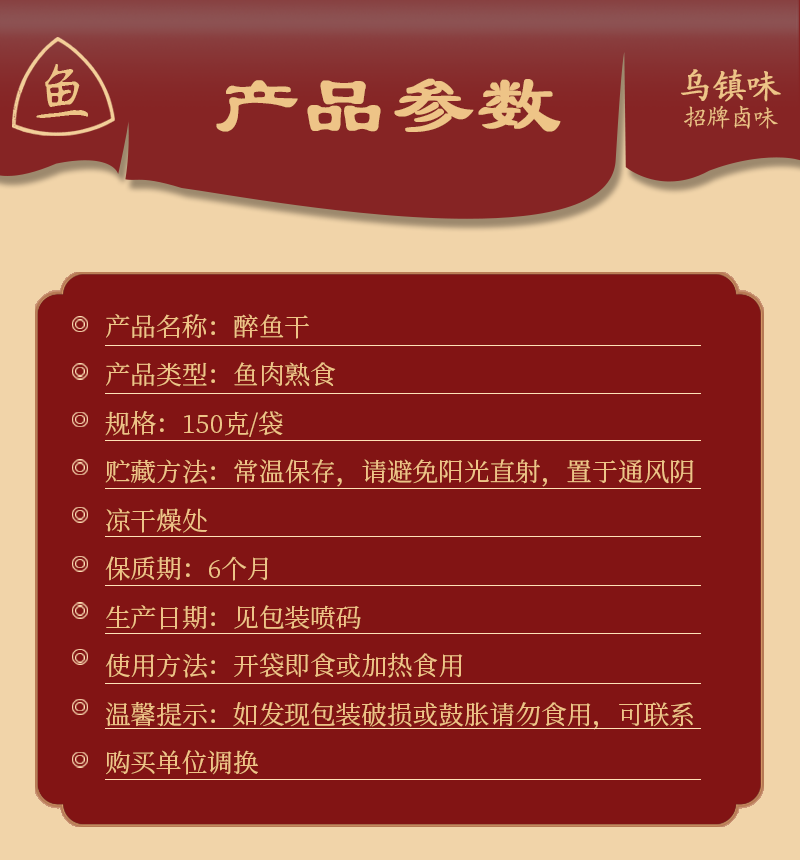 商品名称:【三珍斋】醉鱼干150g(单位:袋) 红色