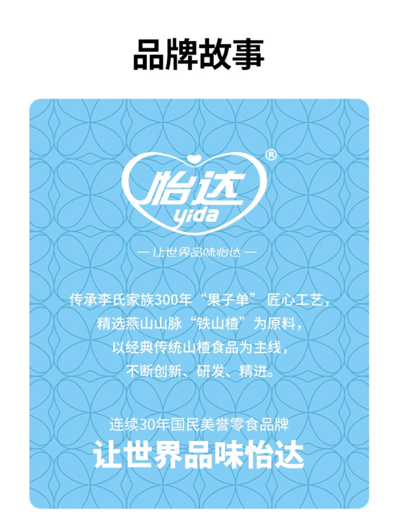 商品名称:怡达72g 酸甜可口原果打浆 果粒乳酸菌山楂棒棒卷*3袋 酸甜美味