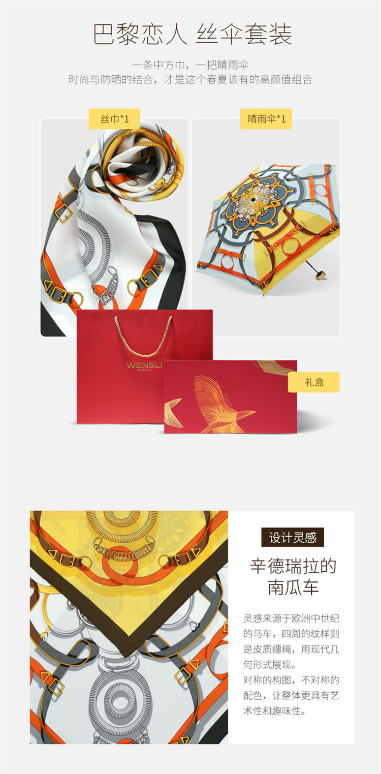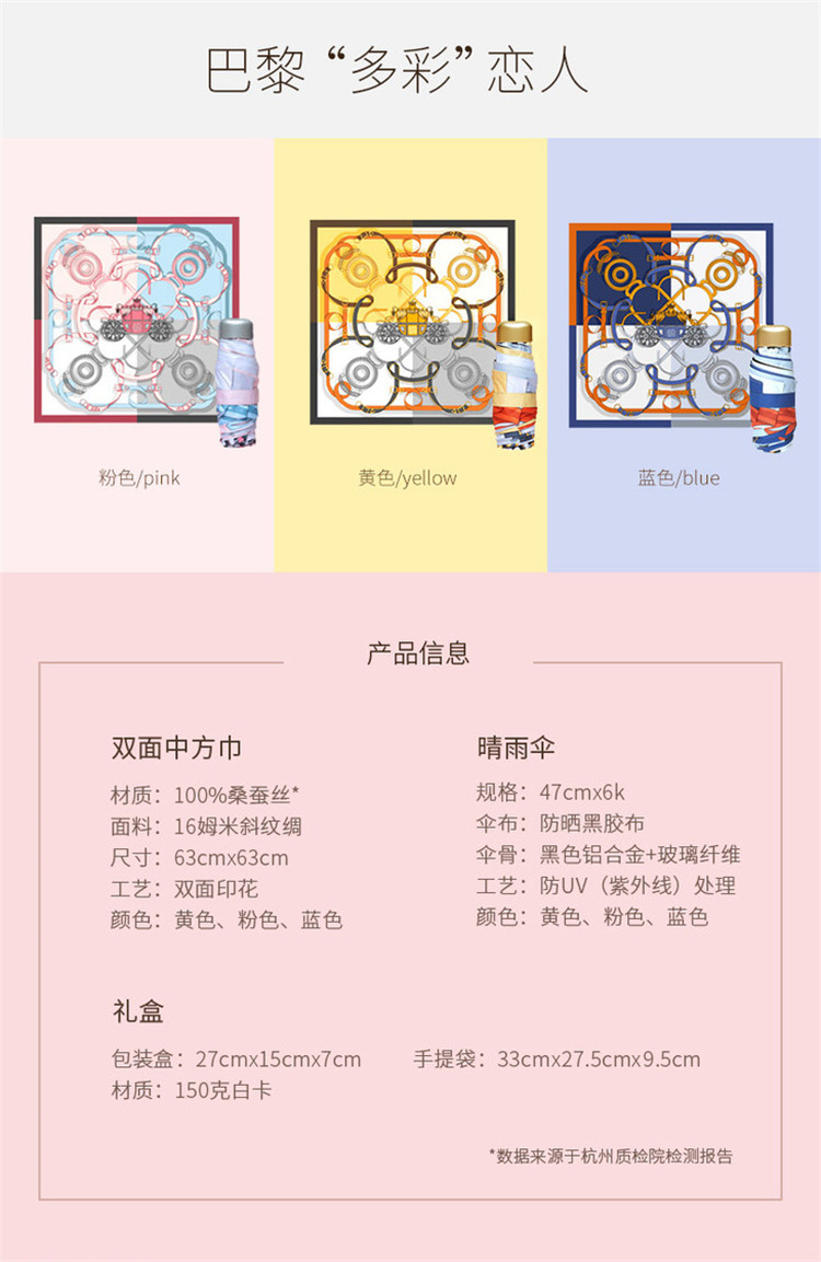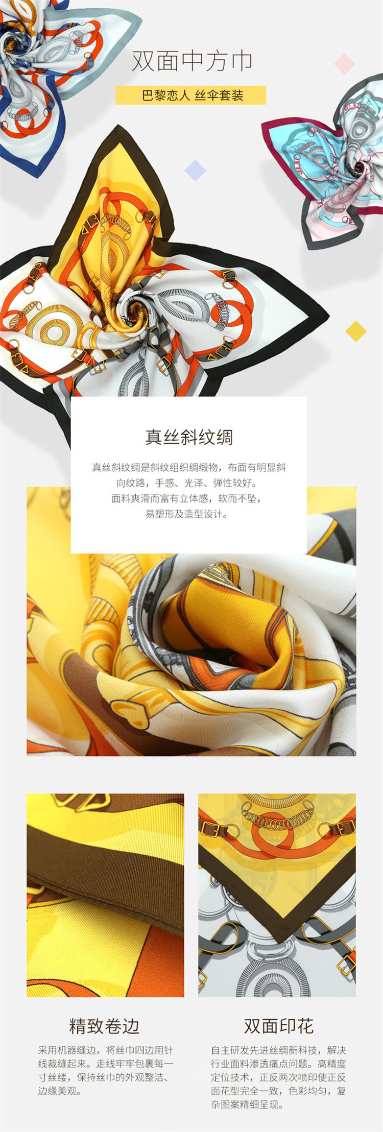 商品名称:Wensli/万事利 巴黎恋人丝巾雨伞套装(黄/粉/蓝)颜色随机 随机